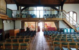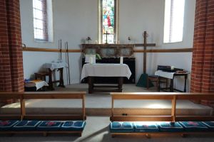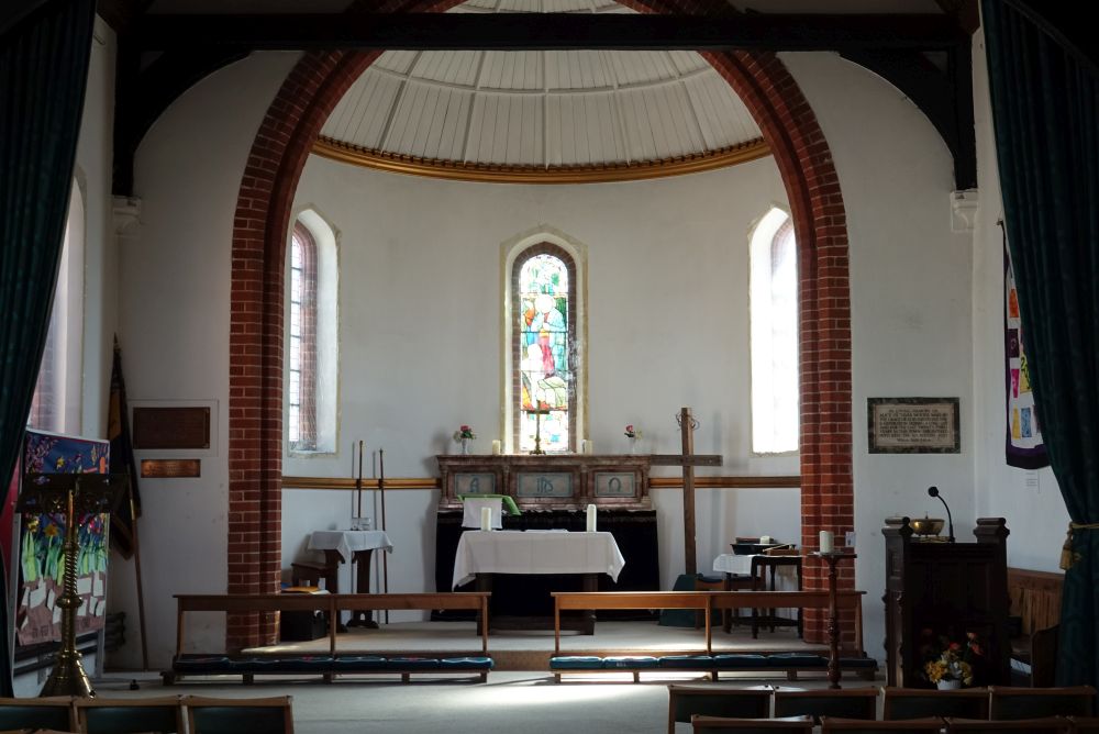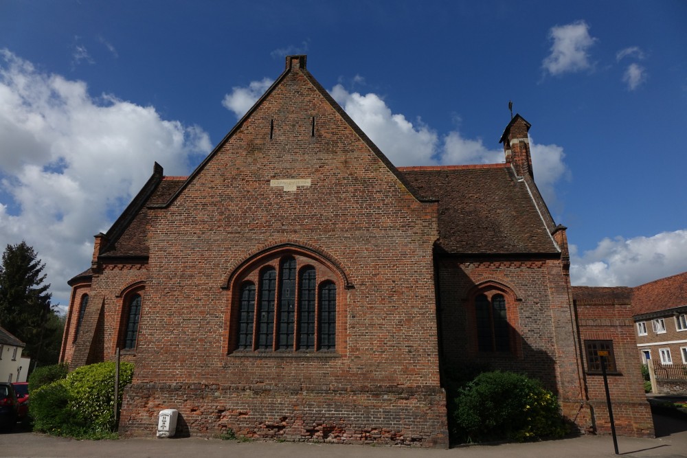 The original church for this small town was out in the fields to the east at the lost village of Layston. This small brick church of St Peter was built 1614-26 as a town based preaching house. with the porch and an apse added in 1899. It only replaced Layston as the parish church in the 1950s.