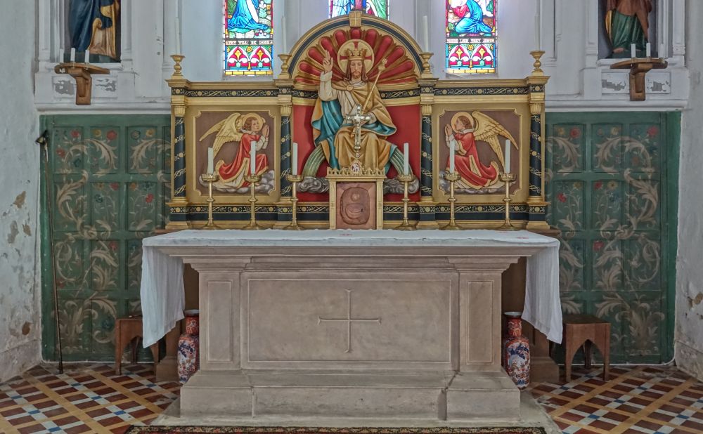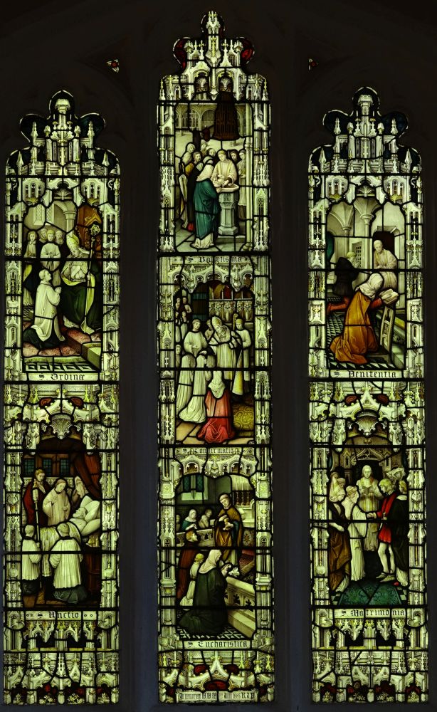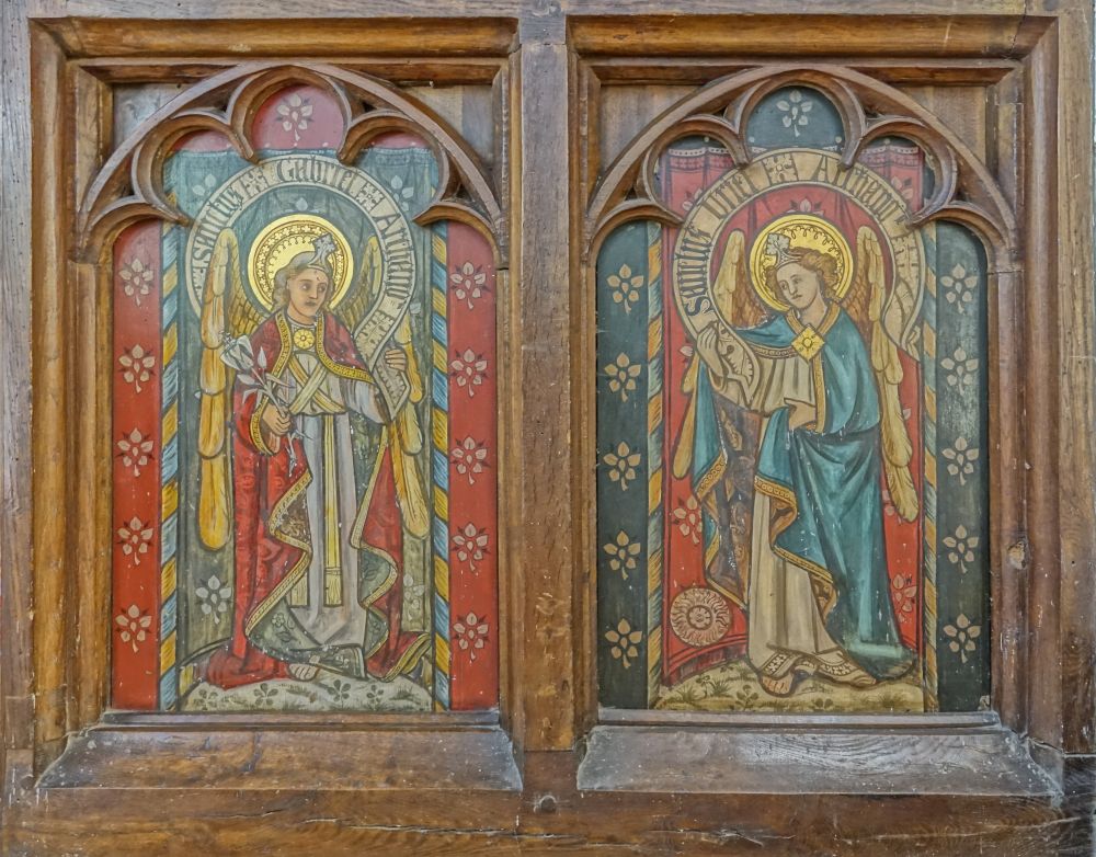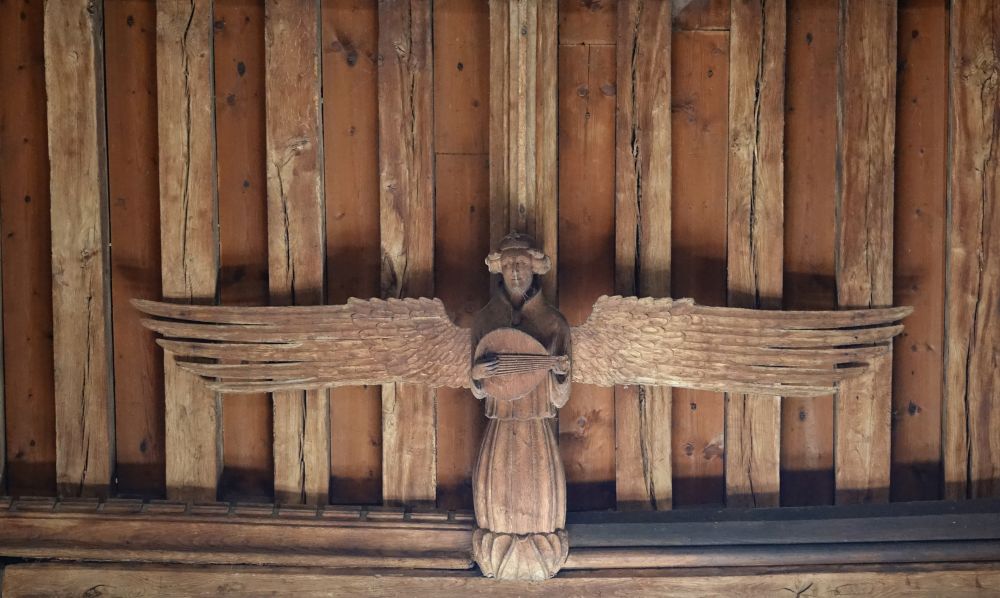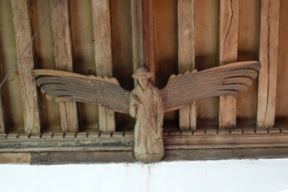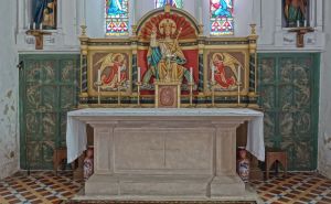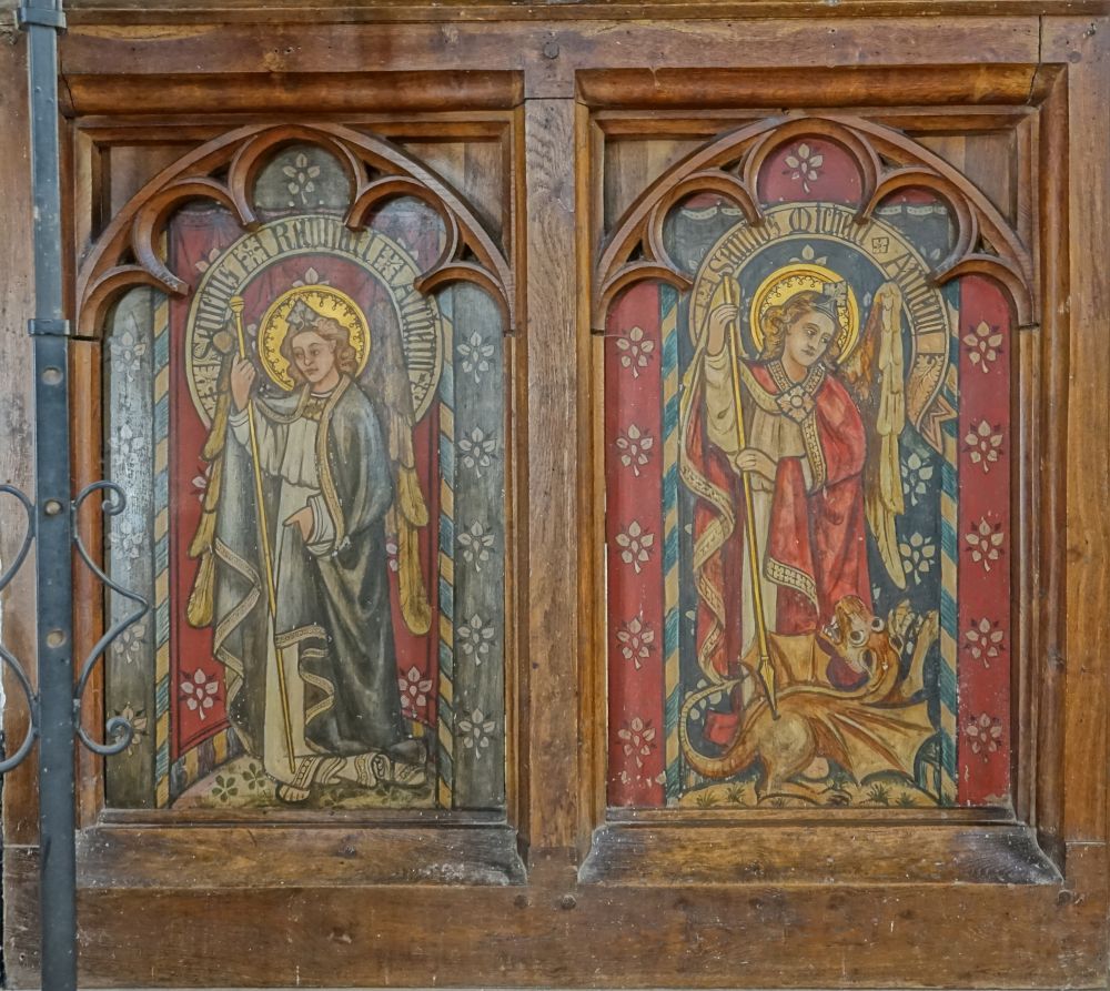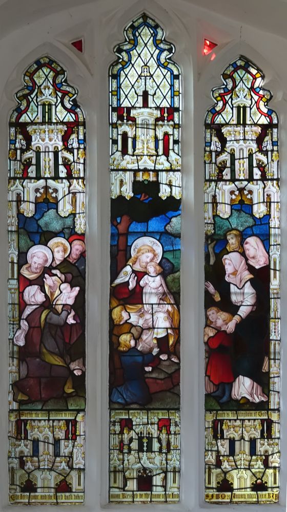 A surprisingly high church for a village church. The church features a 1920s rood and rood loft (by F.C. Eden) and six candles on the altar. Mainly 14th century, but with an earlier chancel. 19th century restoration was by Gilbert Scott in 1858 and J.T. Micklethwaite and Somers Clarke 1887-91.