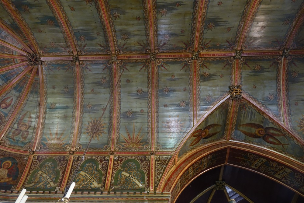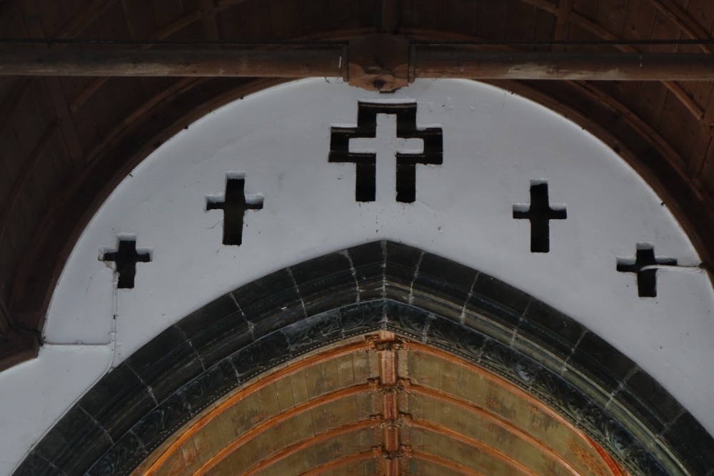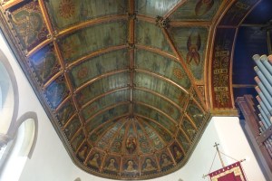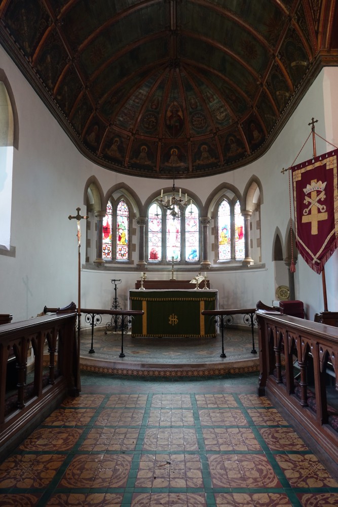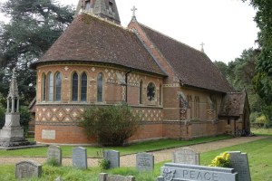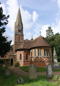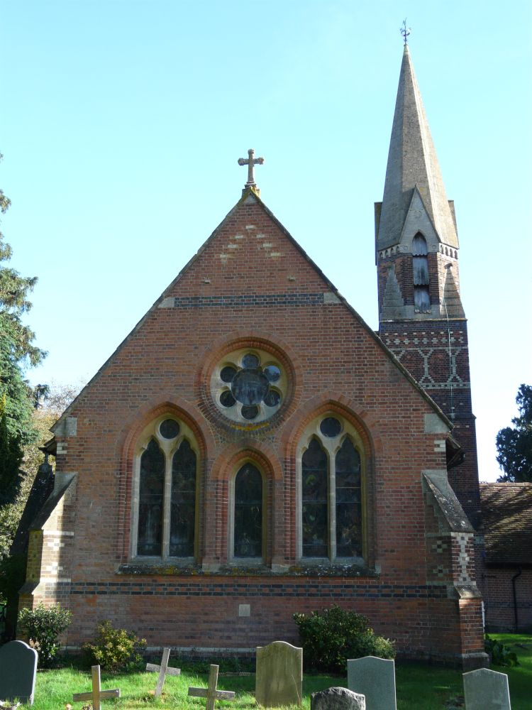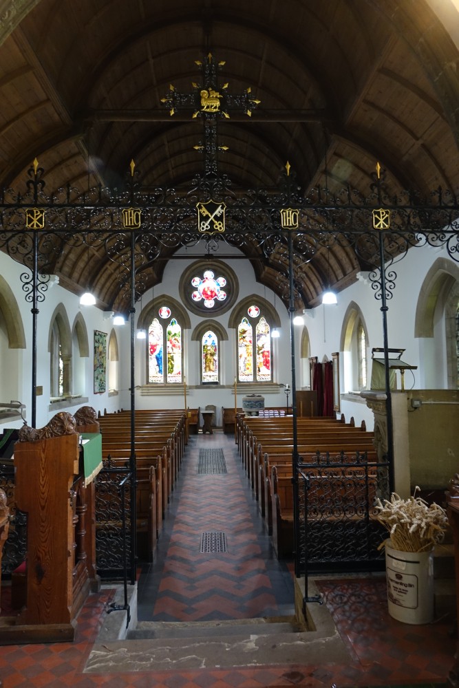 Ayot St Peter is little more than a hamlet west of Welwyn. John Loughborough Pearson designed a church on the medieval a site about half a mile away where there is still a graveyard (see final pictures), that burnt down a few years after in 1874 . The present “arts and crafts” church was designed by J.P. Seddon and built in 1875 and features many contemporary fittings, including the font, lectern, pulpit and much of the glass and chancel ceiling to Seddon’s designs. The screen is a later edition from 1908.