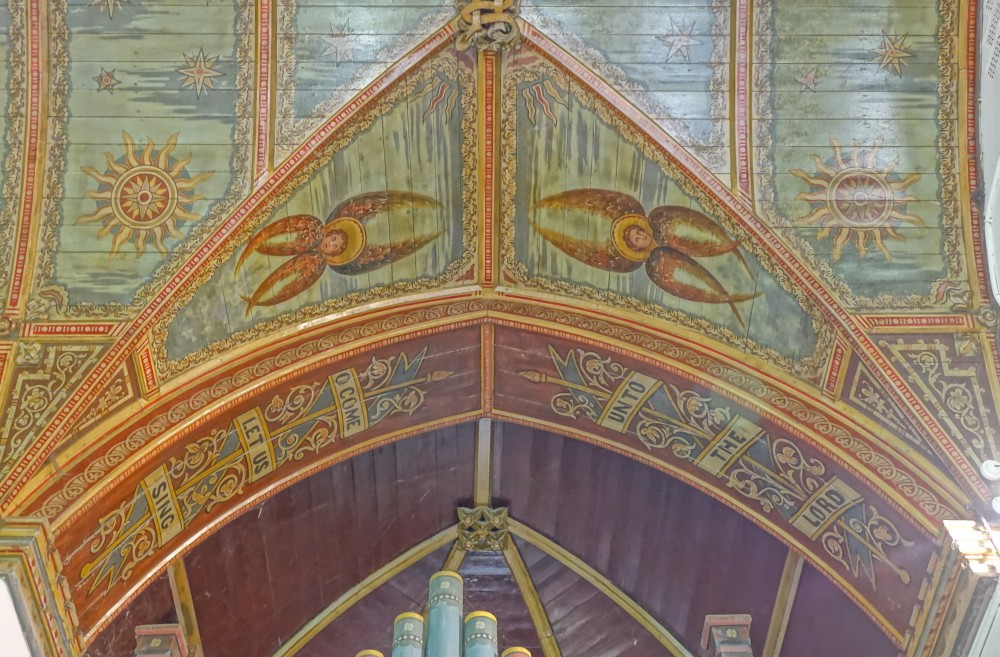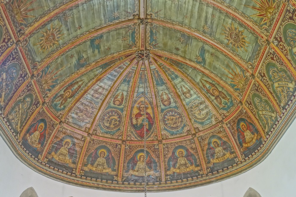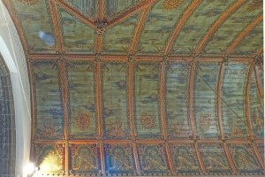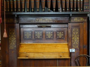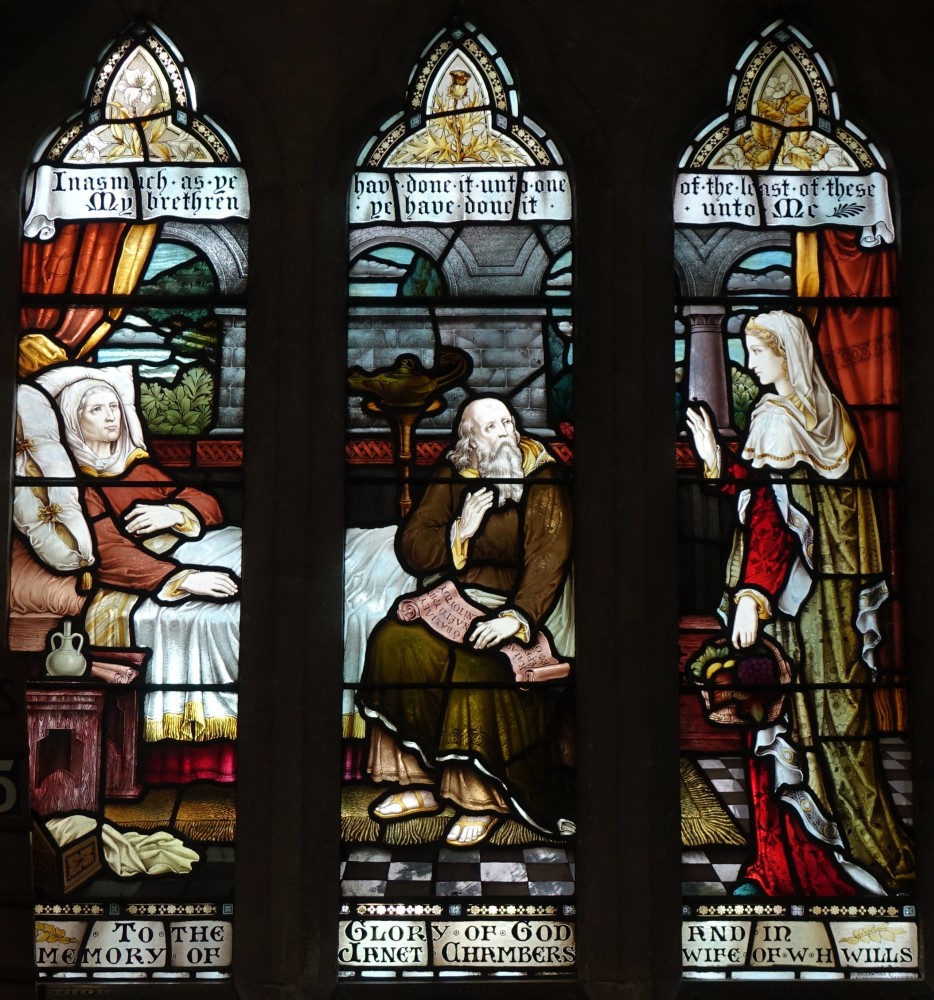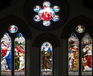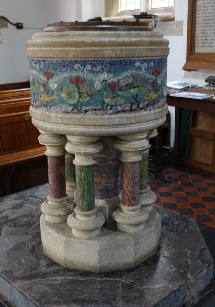 Ayot St Peter is little more than a hamlet west of Welwyn. John Loughborough Pearson designed a church on the medieval a site about half a mile away where there is still a graveyard (see final pictures), that burnt down a few years after in 1874 . The present “arts and crafts” church was designed by J.P. Seddon and built in 1875 and features many contemporary fittings, including the font, lectern, pulpit and much of the glass and chancel ceiling to Seddon’s designs. The screen is a later edition from 1908.