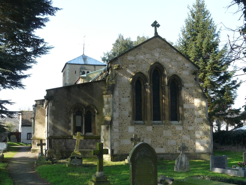 In the centre of what is now virtually the northern suburb of Hitchin. The south aisle is in the Norman style by GG Scott from 1859.