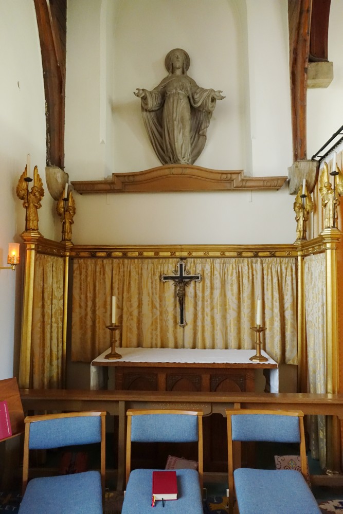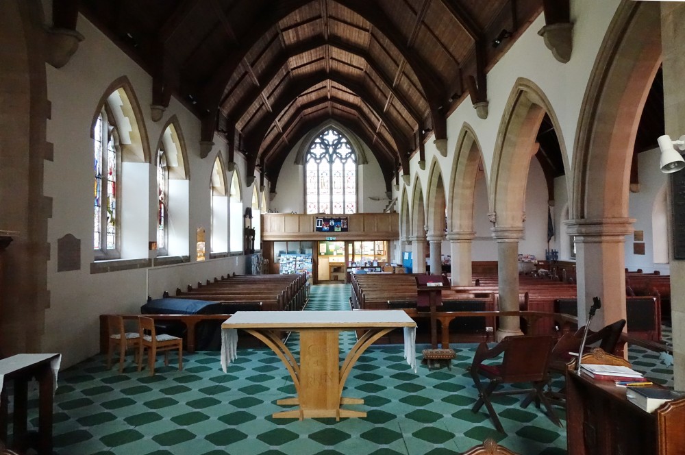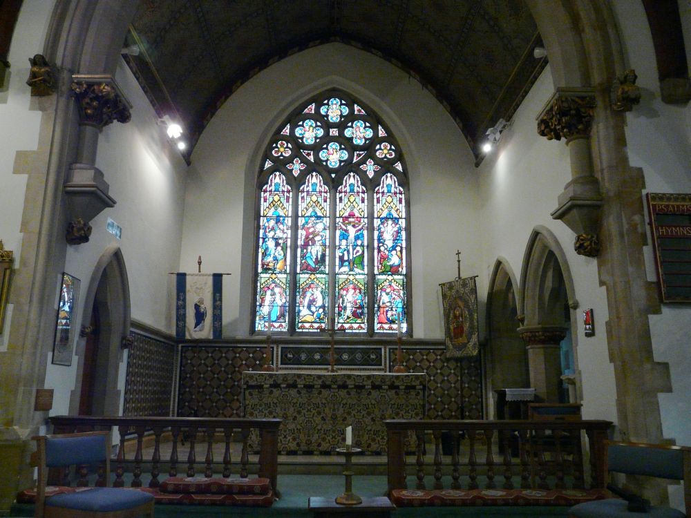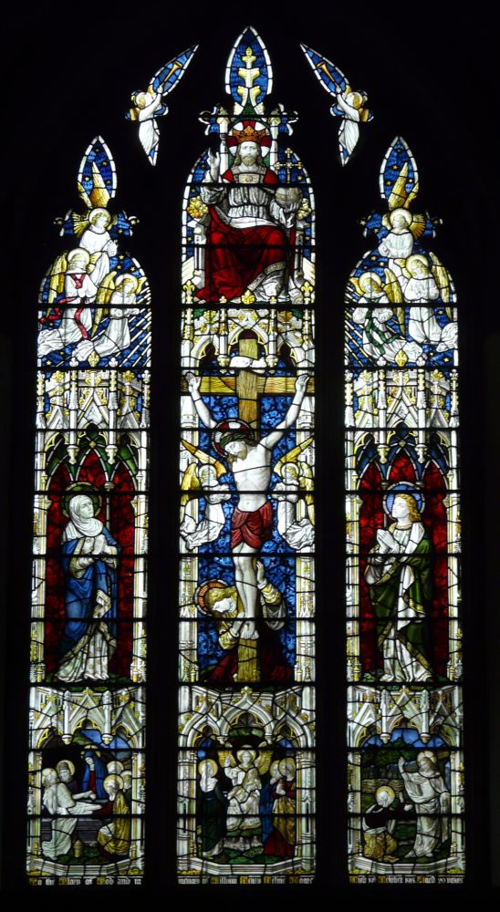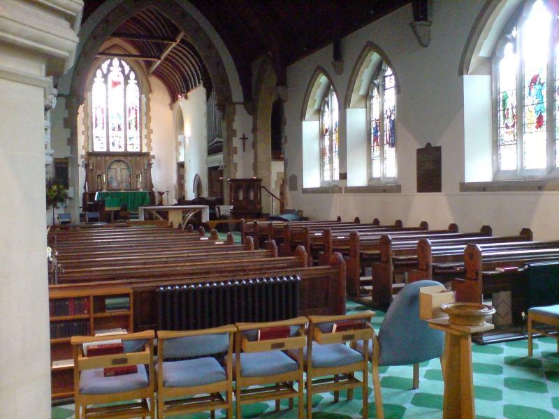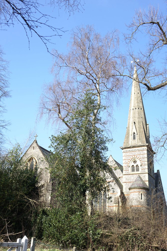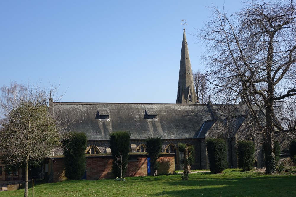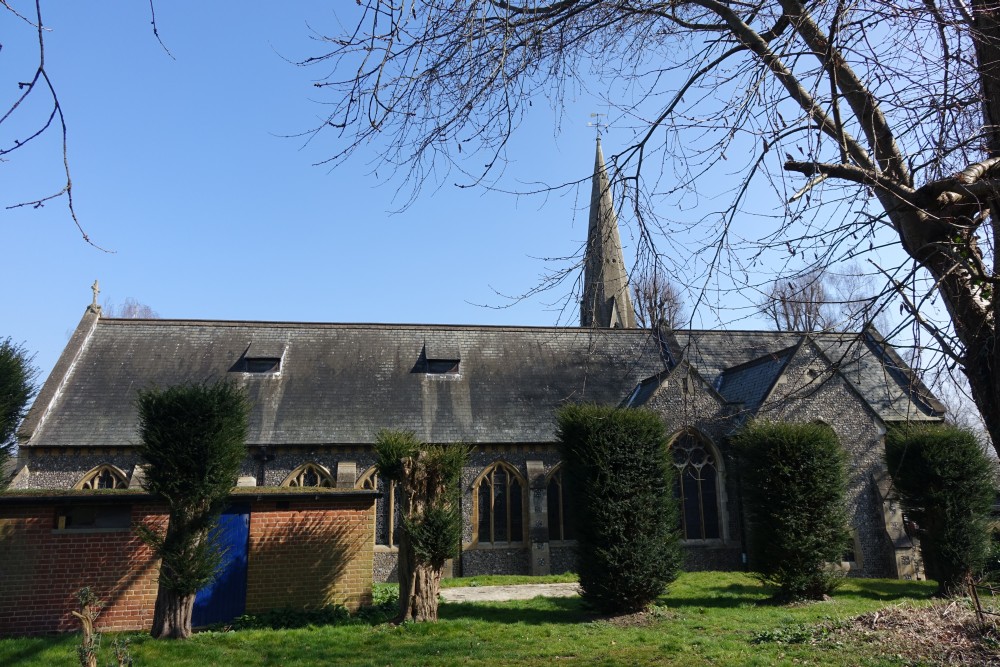 At the south end of this very smart South Herts town. The original 1864 church (T. Smith) was extended to become the south aisle of a new church ( J.Oldrid Scott 1907).