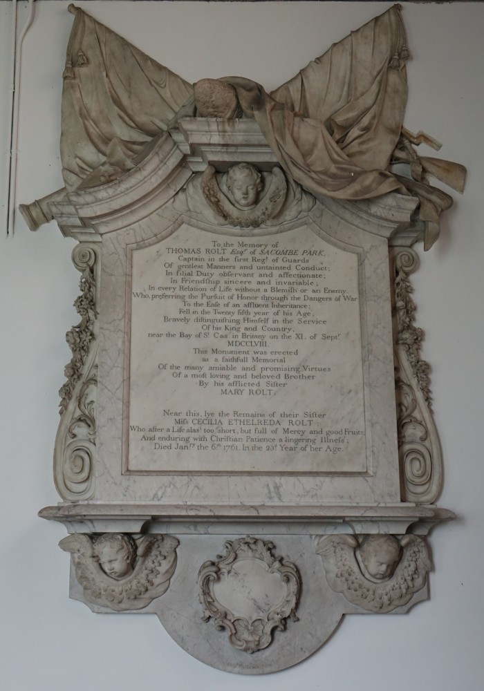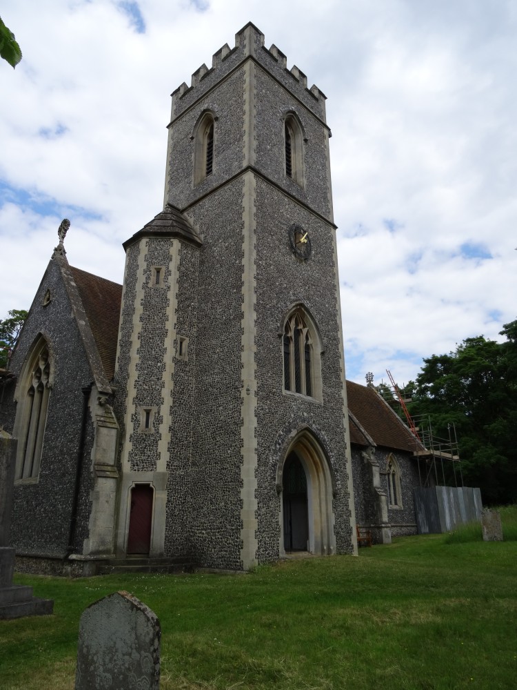 An estate church, virtually on its own. Heavily rebuilt in 1855 reputedly with materials from Thundridge old church. There are memorials by Rysbrack and Flaxman.