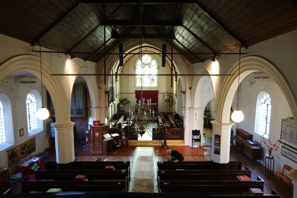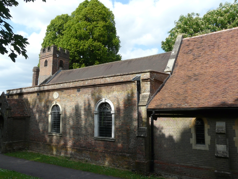 On a cramped site near Markyate Cell, the local estate, north of this large village and isolated from it by an underpass under the A5. The tower and nave are of 1734 with aisles of 1811 and a chancel of 1892.