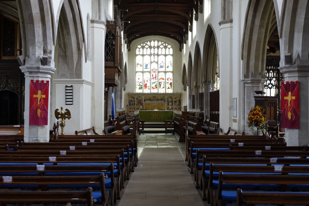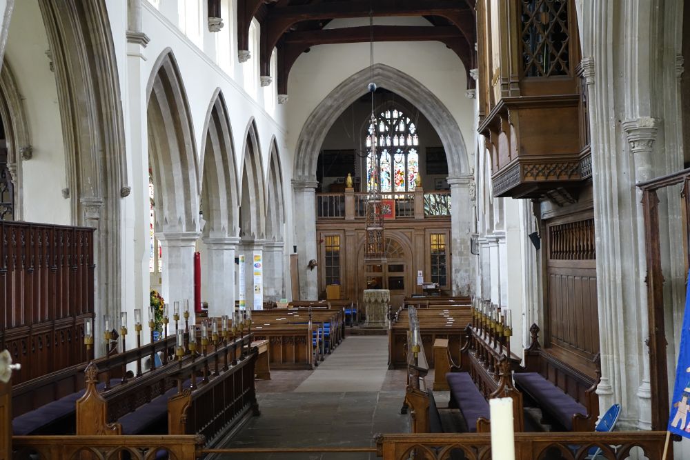 One of the county’s largest churches with a low tower and fine east view across the landscaped river side. The tower is 12th/13th century, the nave 14th century with a 15th century clerestory. The north and south chapels are from the second half of the 15th century. It was restored by G.G. Scott in 1858-65 and George Pace in 1962.
