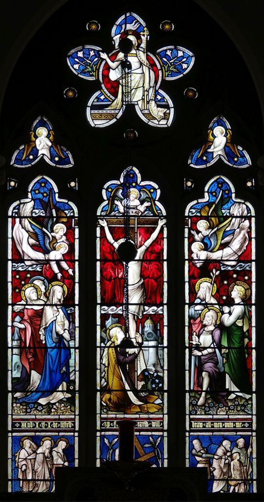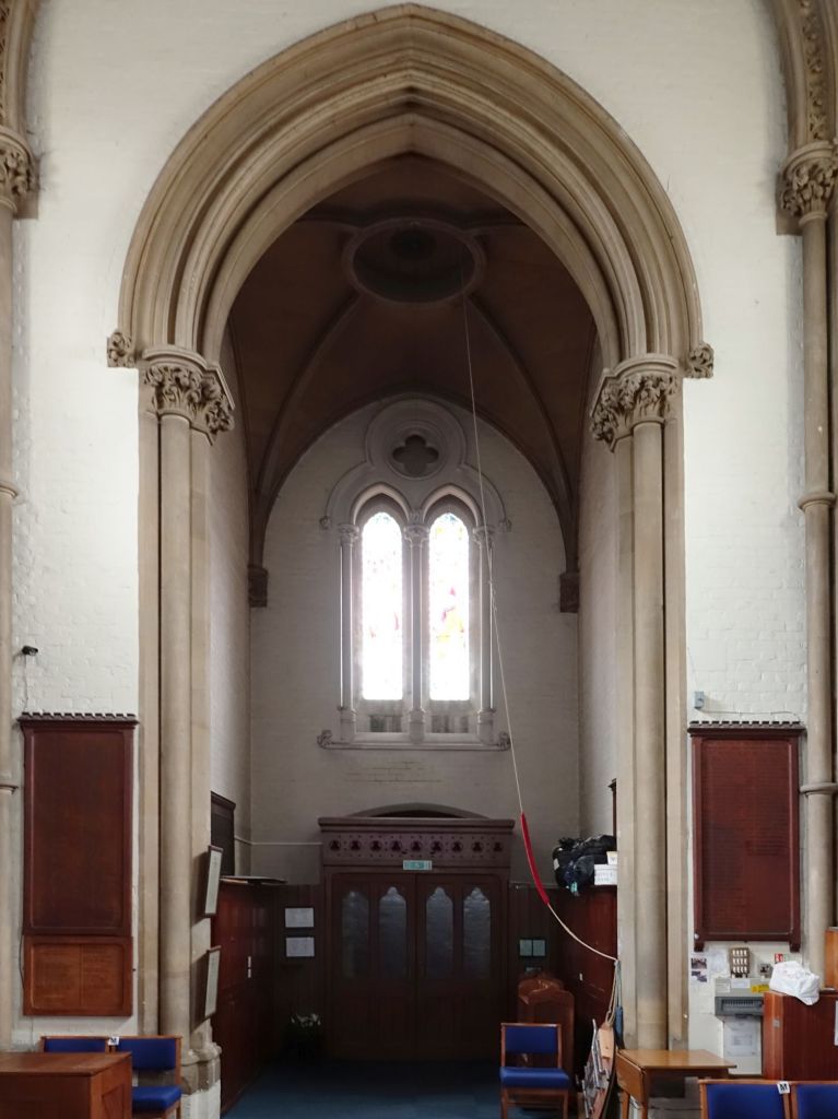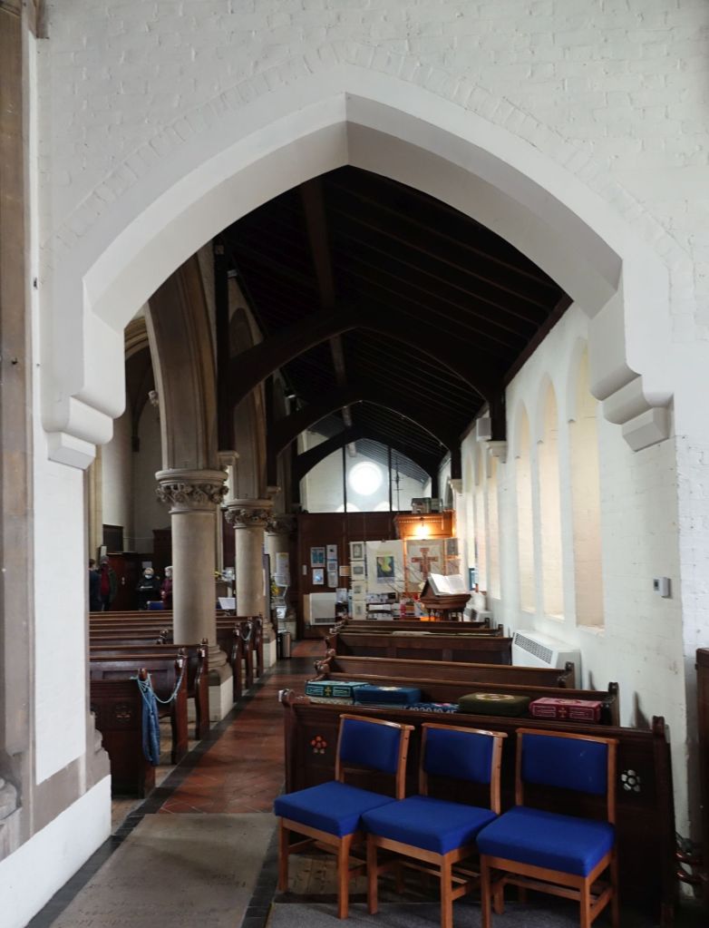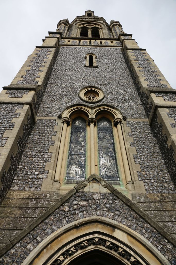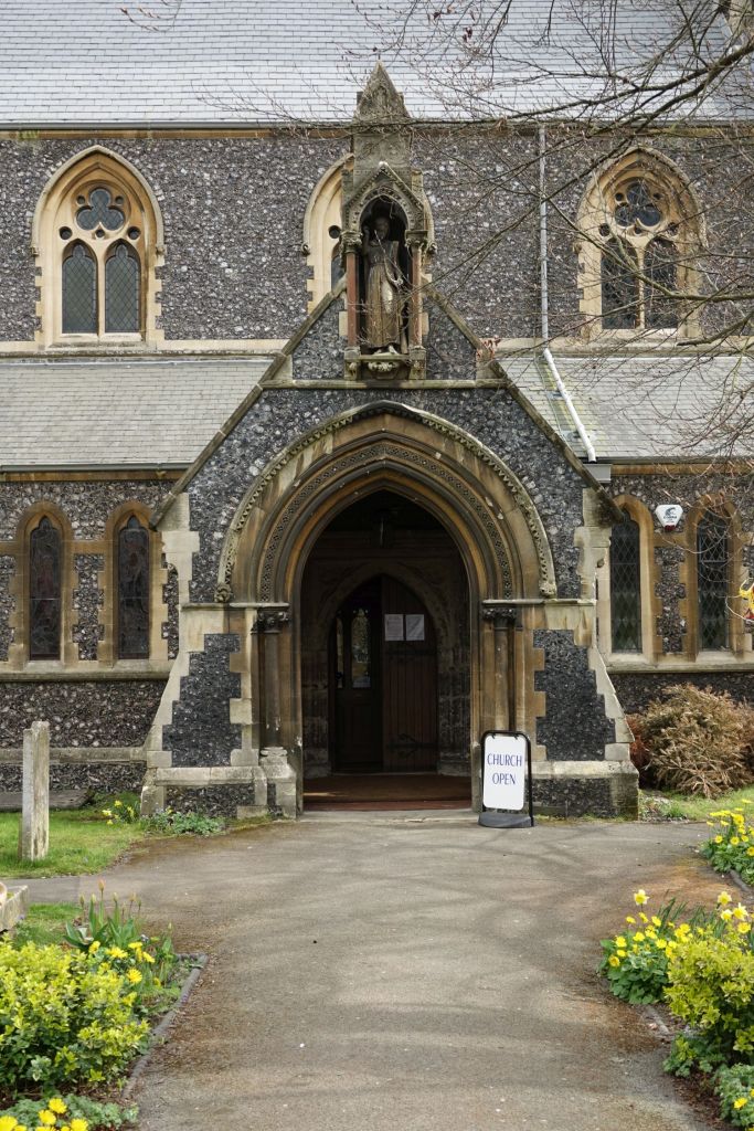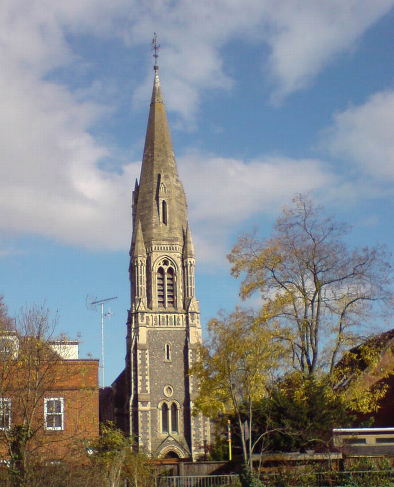 1869-1870 by J. Johnson jr with the spire finished in 1875-76. The south doorway remains from the medieval building.