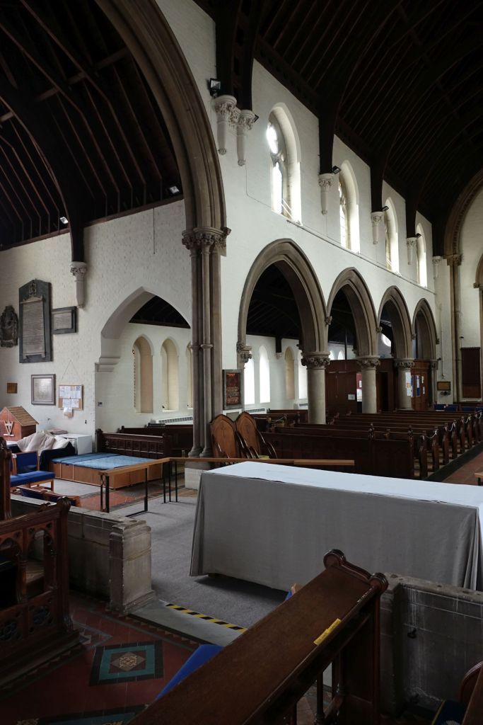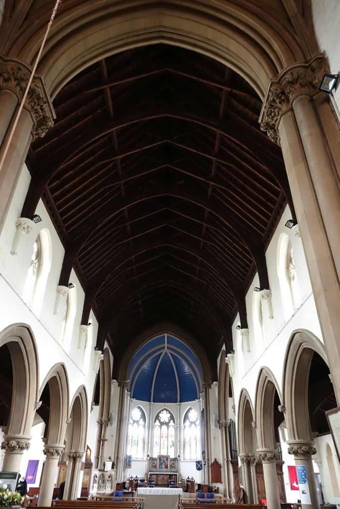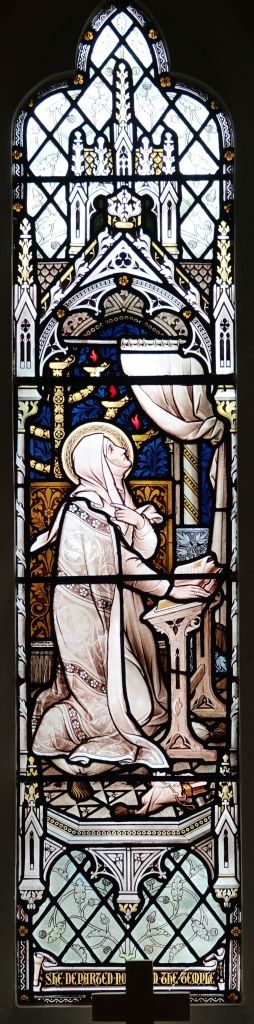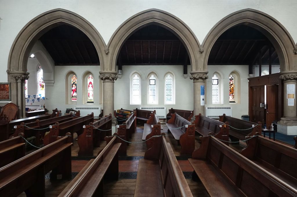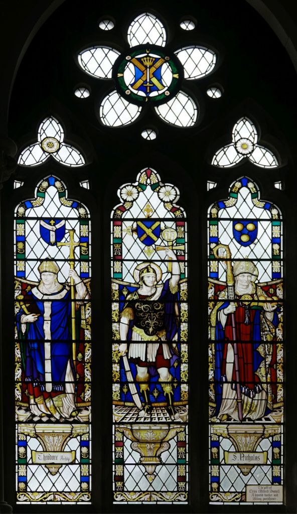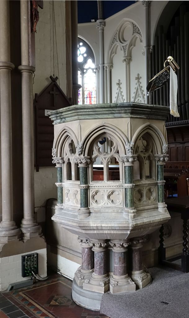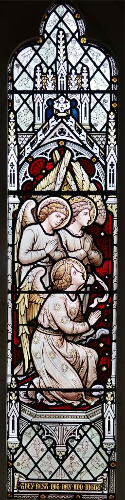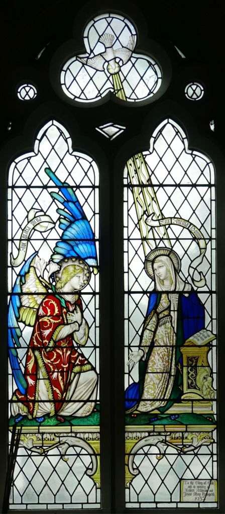 1869-1870 by J. Johnson jr with the spire finished in 1875-76. The south doorway remains from the medieval building.
