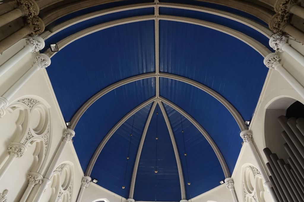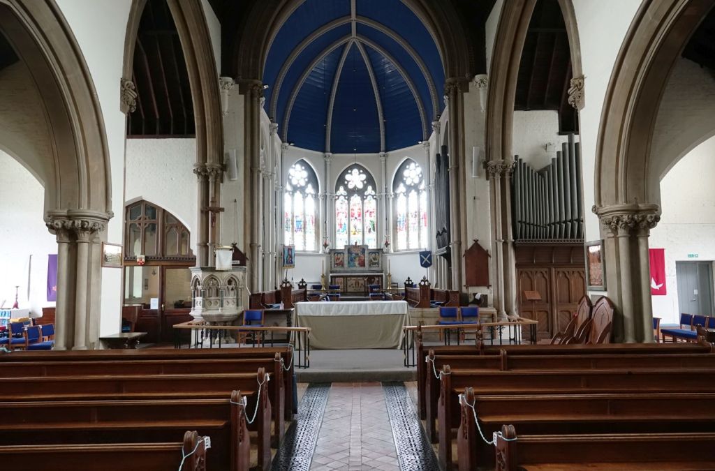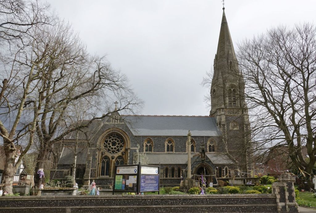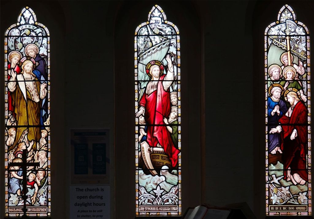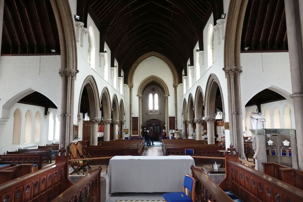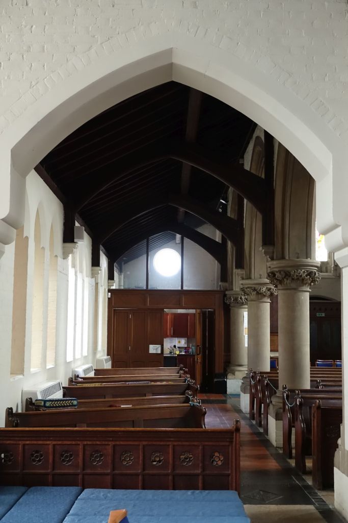 1869-1870 by J. Johnson jr with the spire finished in 1875-76. The south doorway remains from the medieval building.