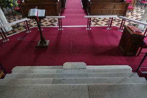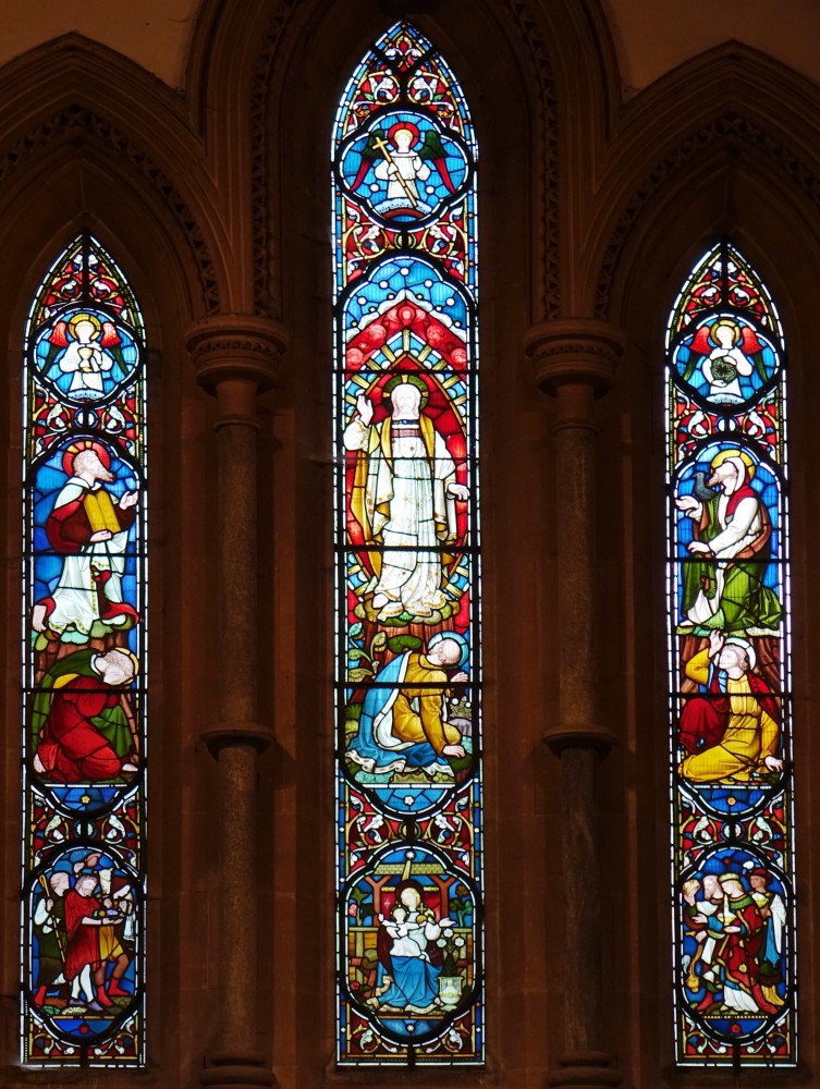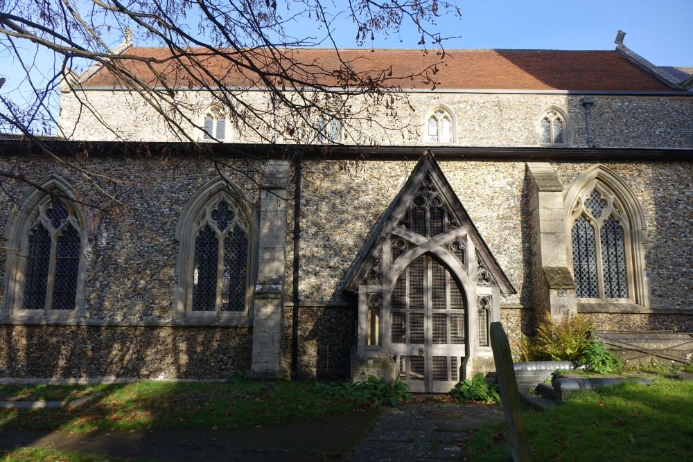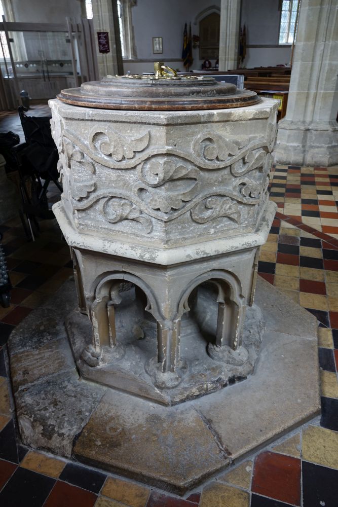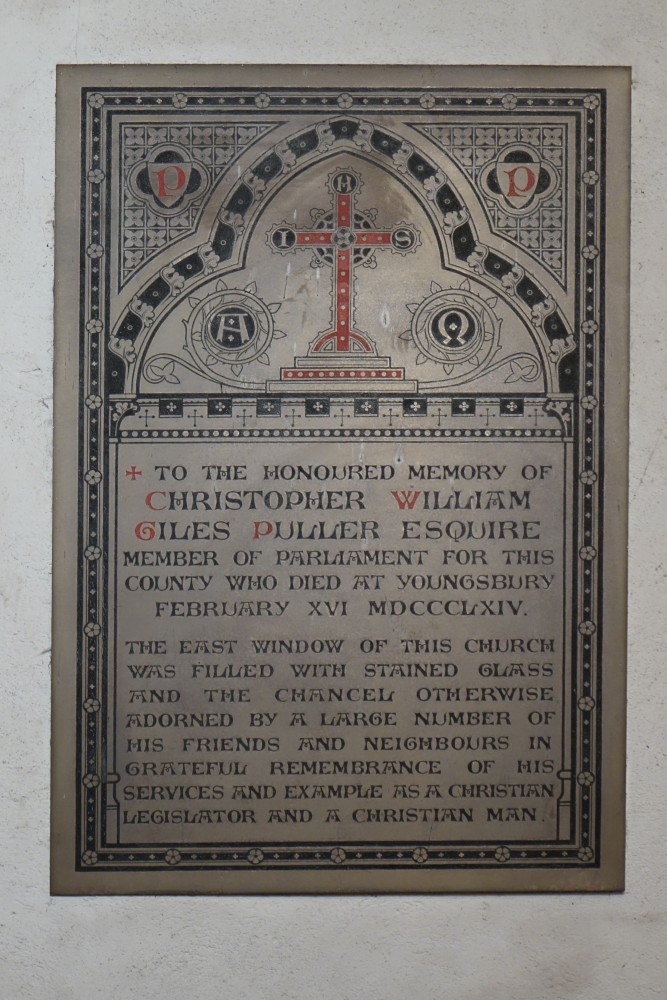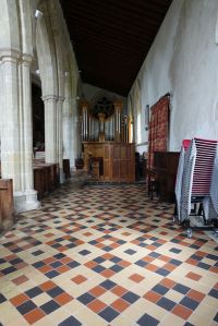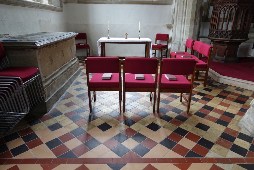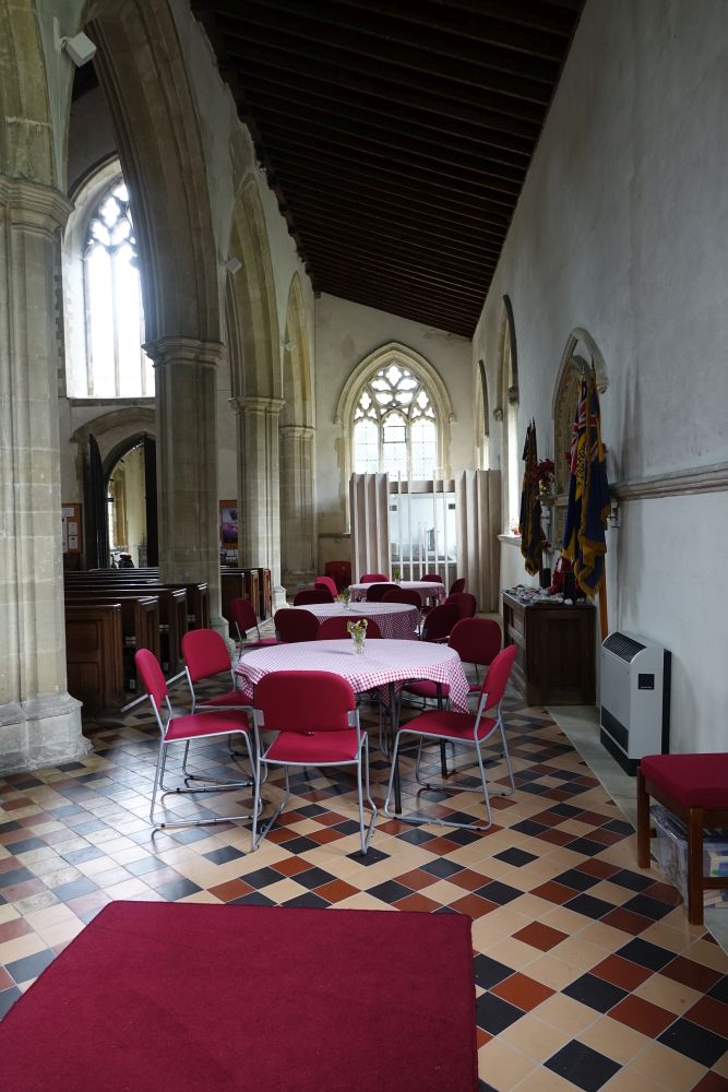 In the centre of an attractive village. There is an almost detached 15th century tower and the church steps steeply up a hillside. The upper parts of the churchyard are level with the aisle roofs. The chancel is 13th century. The nave is 14th century with the west porch of the 15th century. It was restored in 1864-65 by G & H Godwin. There was a reordering completed in August 2017 that installed a nave altar dais, kitchen and toilet and this work is easily distinguished below from the red carpet.