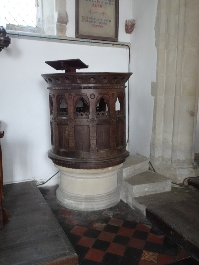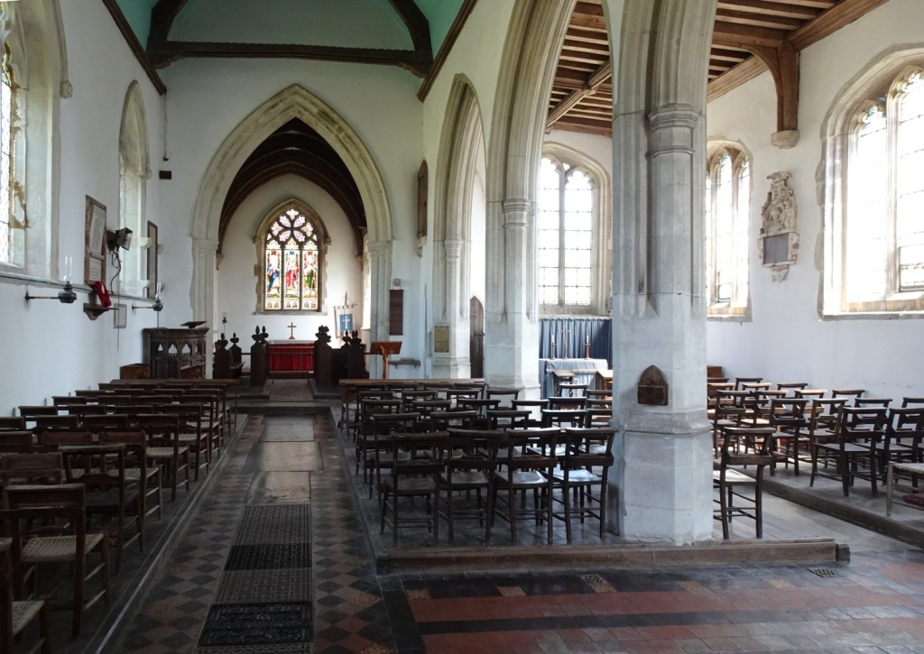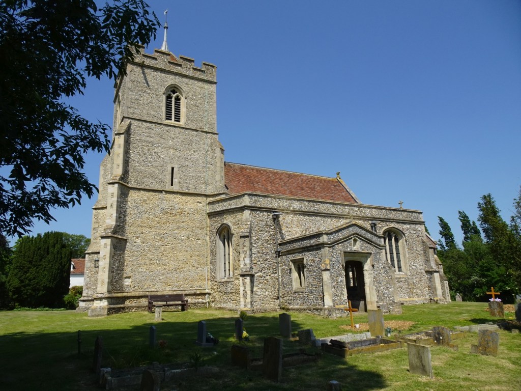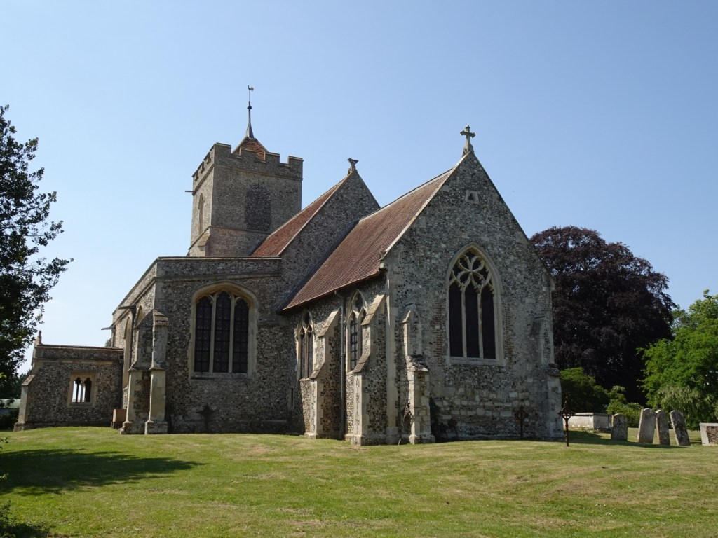 On the edge of a small village by the A10 north of Buntingford. All of the 14th century, some dated glass suggests 1348, except for the 15th century tower and porch. Now redundant and cared for by the Churches Conservation Trust.