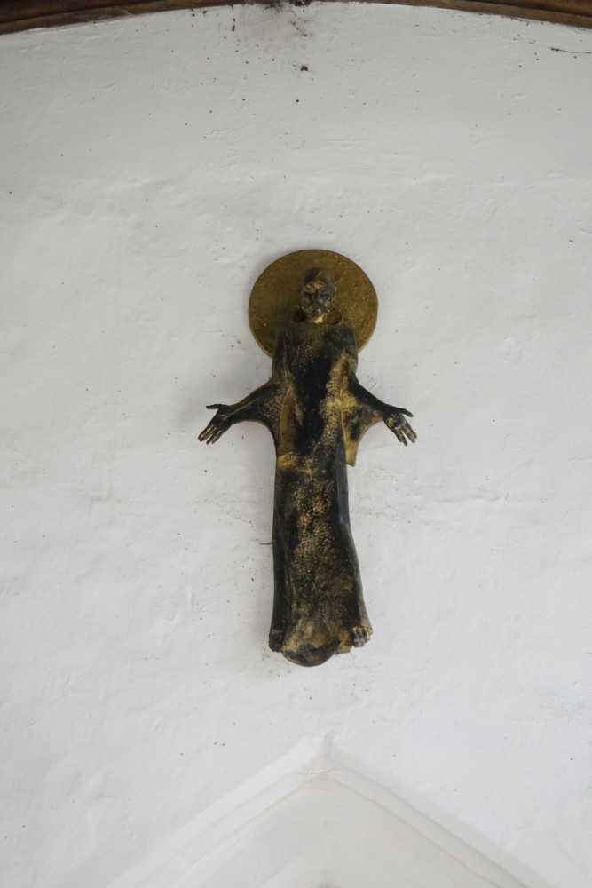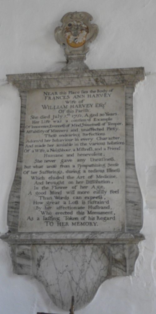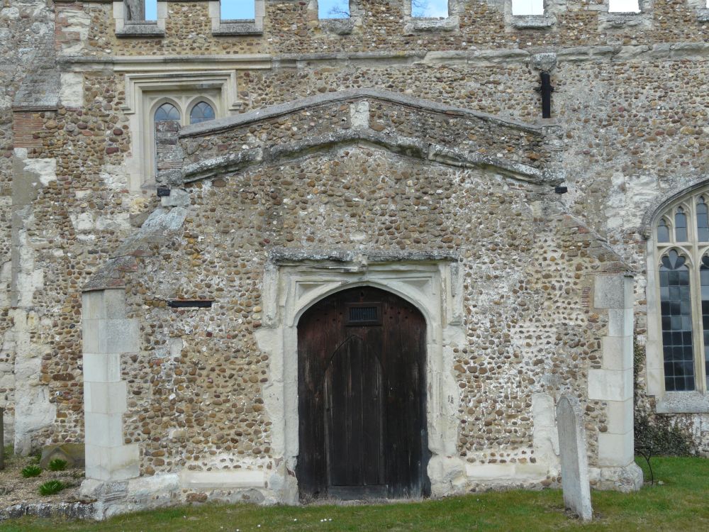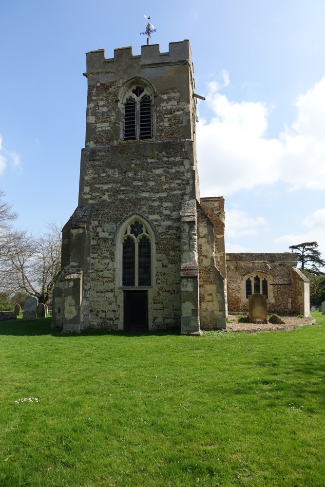 In the north of the county a tall aisleless building approached along a lime avenue. The tower is 14th century, the chancel 18th century.