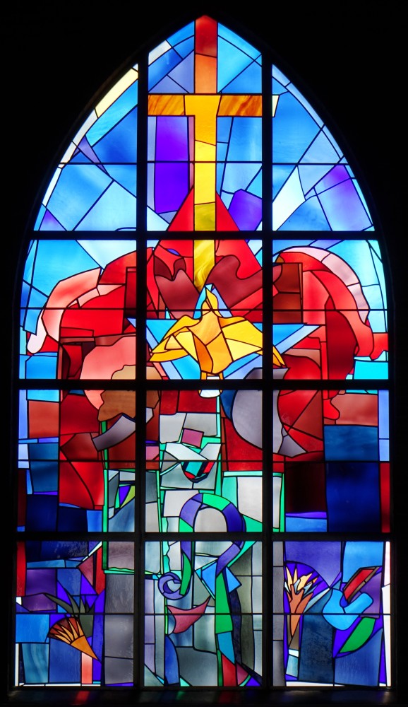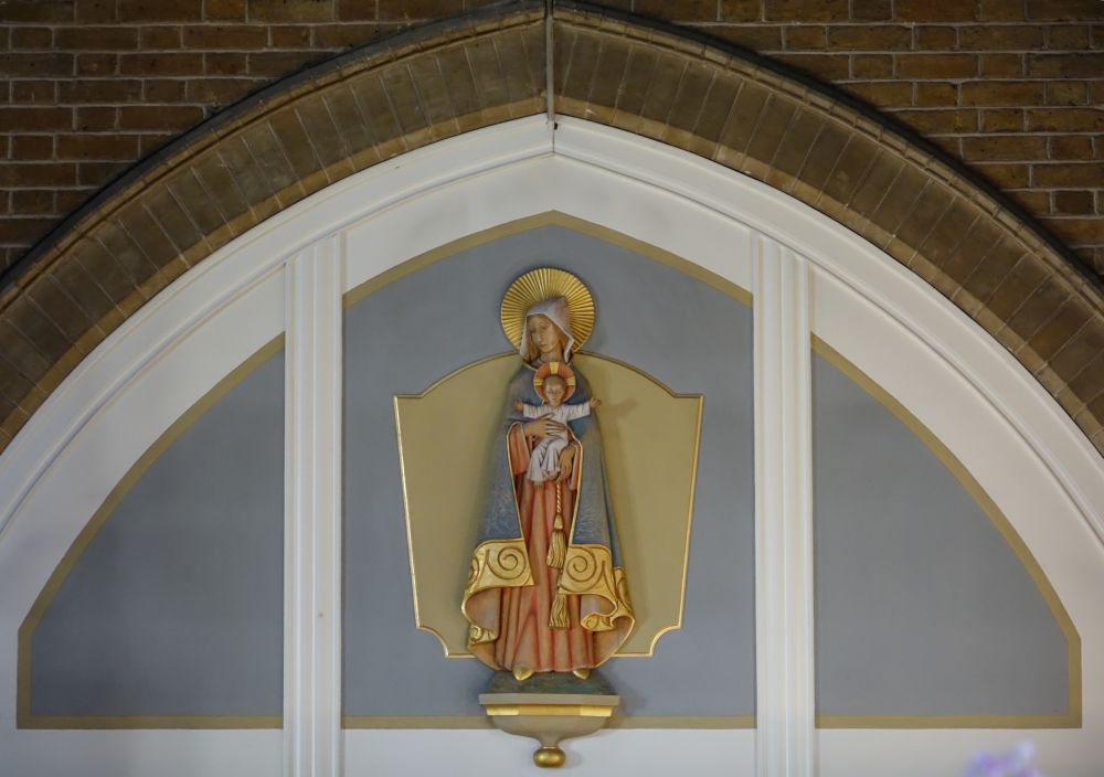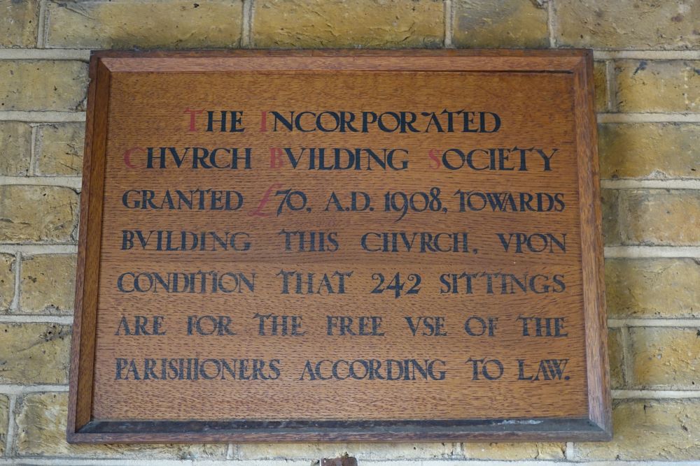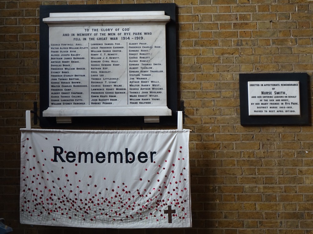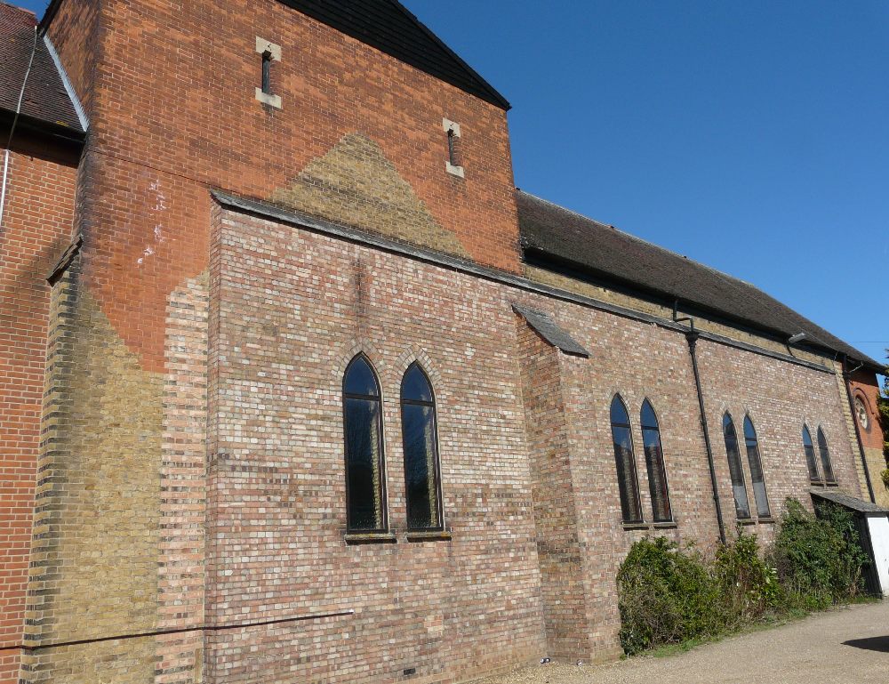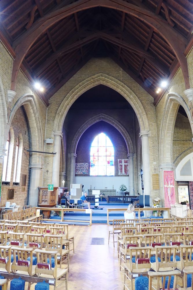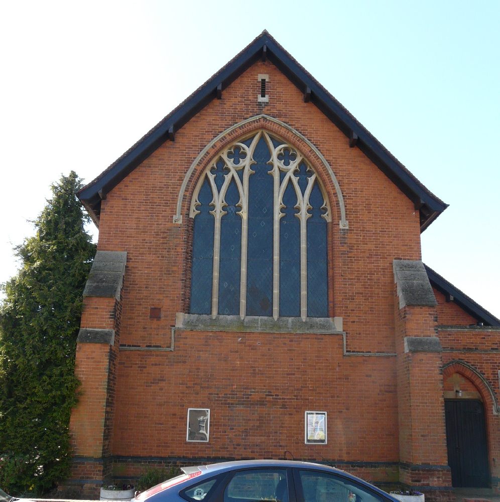 In the Rye Park district of Hoddesdon. The church by Dudley Newman dates from 1908, with an eastern extension by William Turney in 1962. The north wall shows clear signs of original plans for a larger building, as does the strangely bulky truncated tower. The striking east window was designed by Margaret Traherne in 1996.