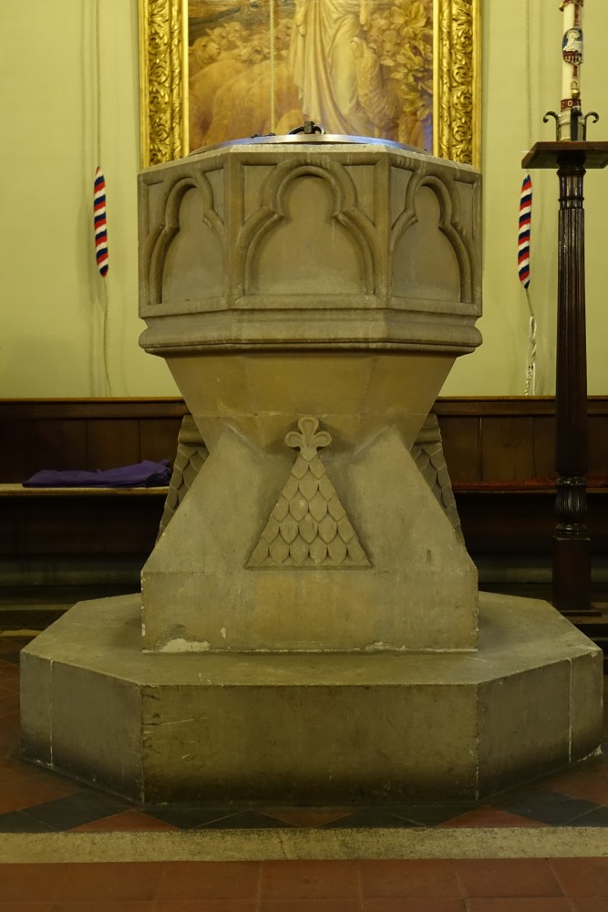 Down a side street a church by William Butterfield 1863-1865. The aisles were added in 1880-1883.
