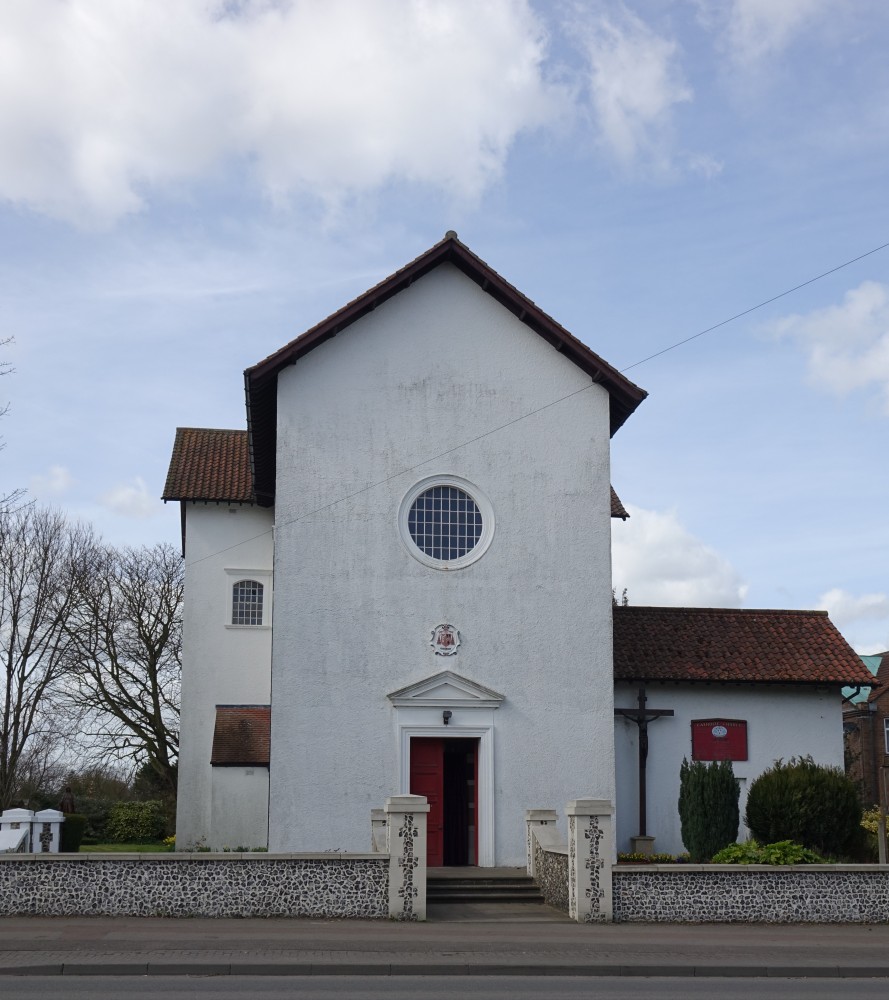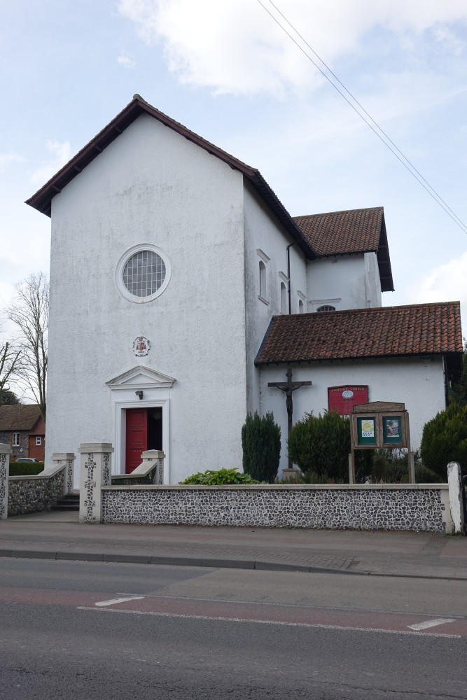 On Melbourn Road on the north side of the town, a tall, slim church of 1916-19 designed by Benedict Williamson a priest. Its flat roof was replaced by the pitched roof in 1937 by A.H. Archard.