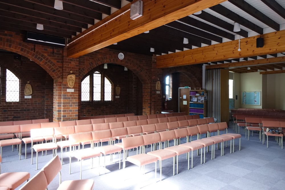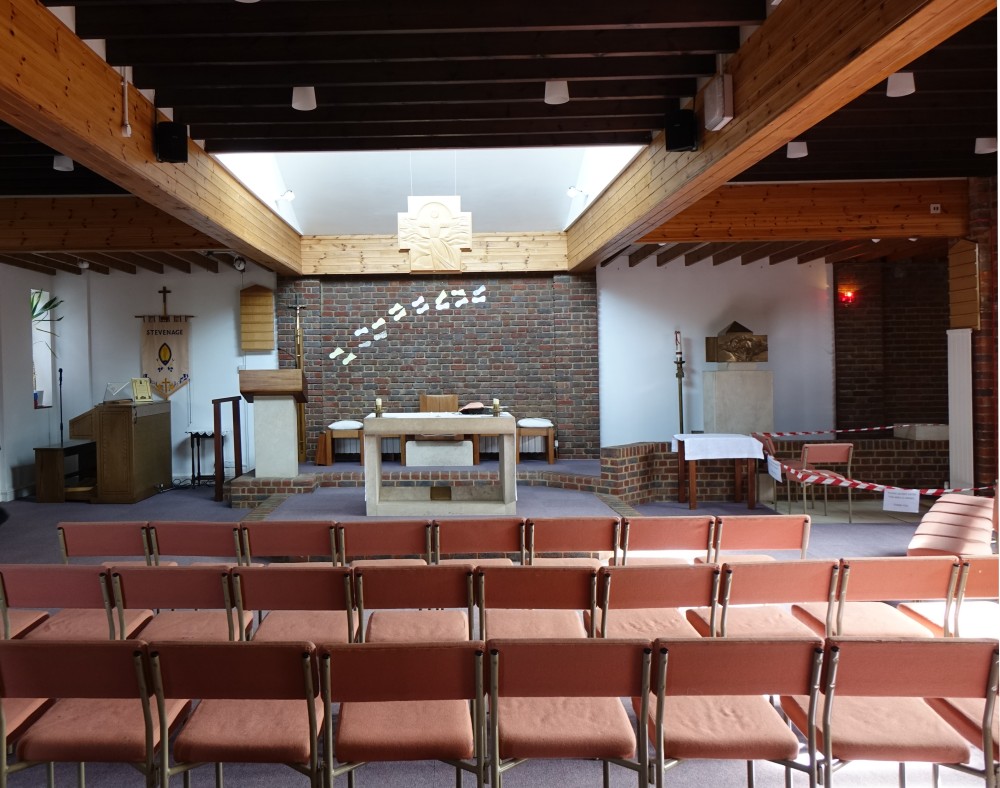 The original church dates from 1914 designed by E.H. Major, a taller east end added in 1937 but a newer front and interior reordering was carried out in 1984, designed by Williams & Winkley.