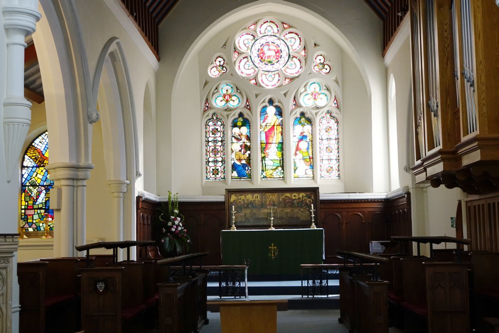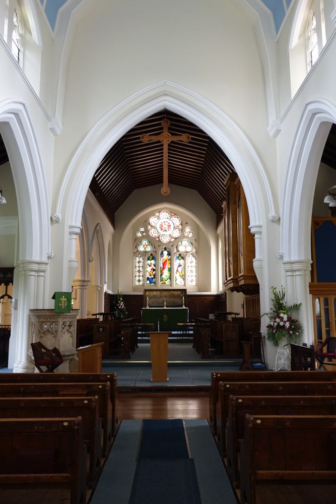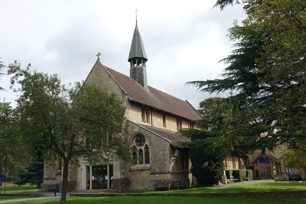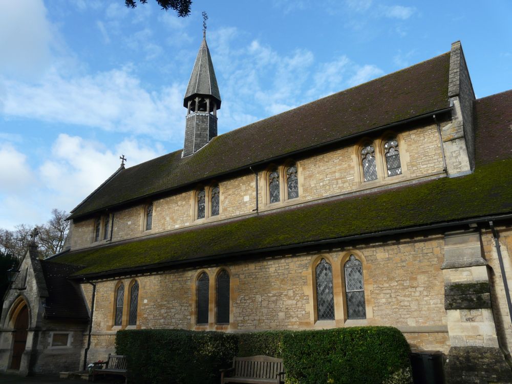 Attractively sited at one end of Boxmoor Common , just south west of the new town centre. It is a church of 1868-74 by R. Norman Shaw, with a western extension by T.F. Woodman of 1893. The Dalle de Verre window is by Joseph Nuttgens and dates from 1972. The brass is a 20th century memorial in a medieval style.