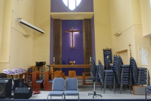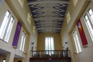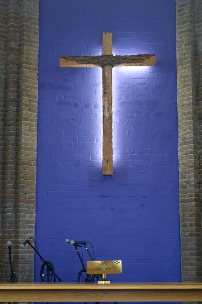 Tucked away behind the shops in Queen’s square the earliest district centre in the new town. It dates from 1952, with a new entrance area added in 2005 when the interior was reordered following an accidental fire.