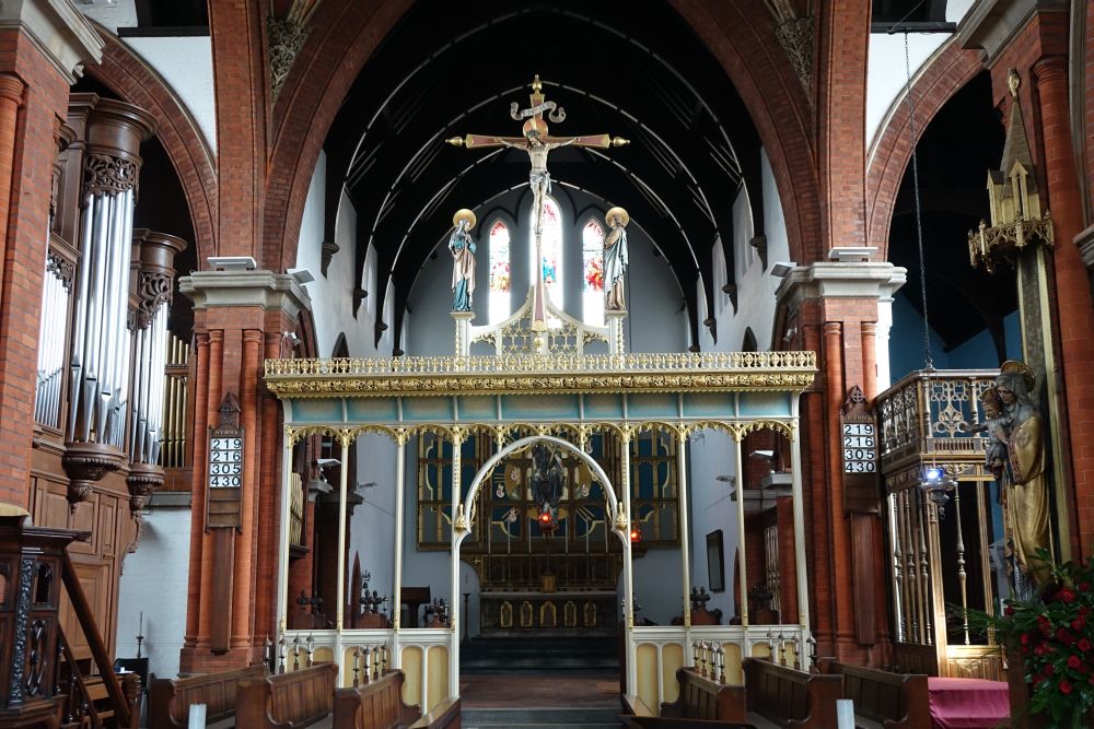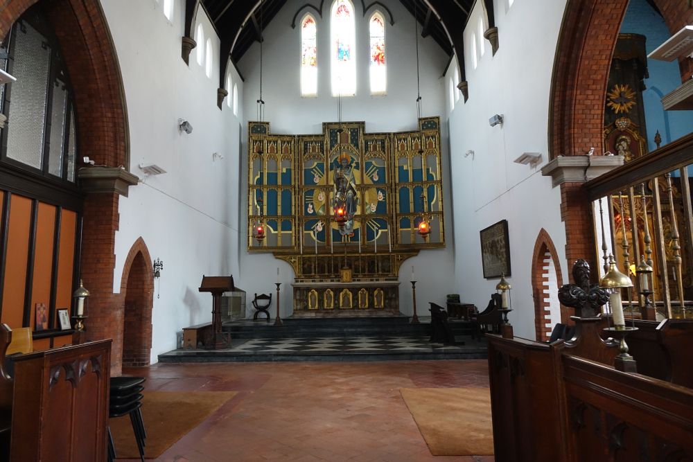 A large church less than a mile north east of the city centre. The church is by William Woodward. The chancel, lady chapel and organ chamber date from 1896, the nave, which replaced an iron church , was added 1901-02. The font is 15th century from Maldon in Essex. The lady chapel screen and reredos are by Martin Travers. The chancel reredos is attributed to Walter Tapper.