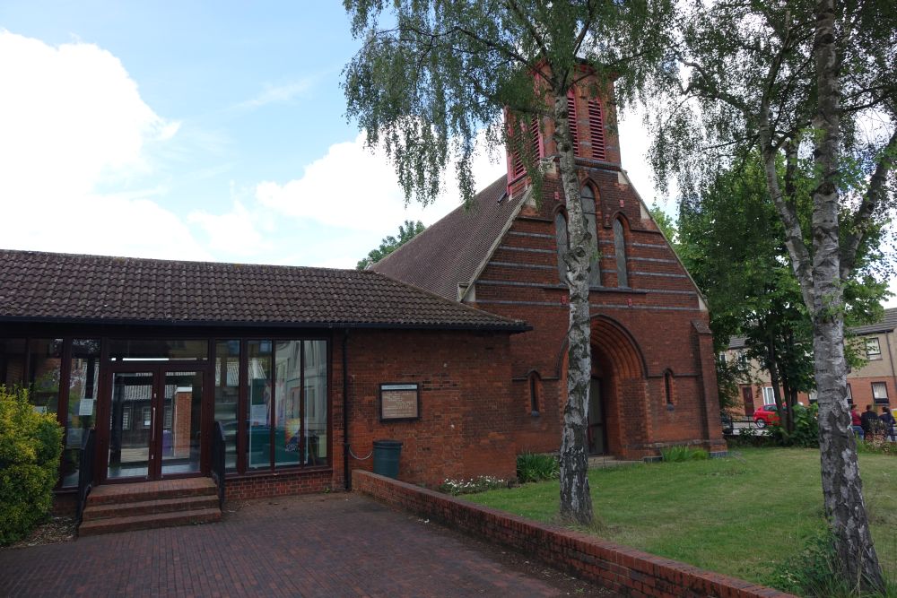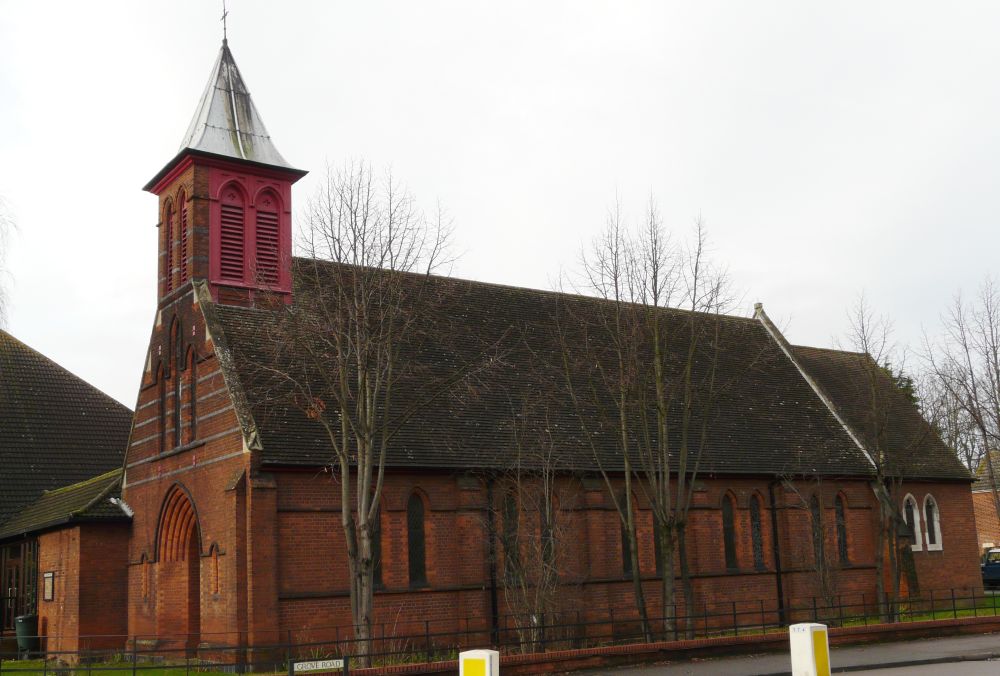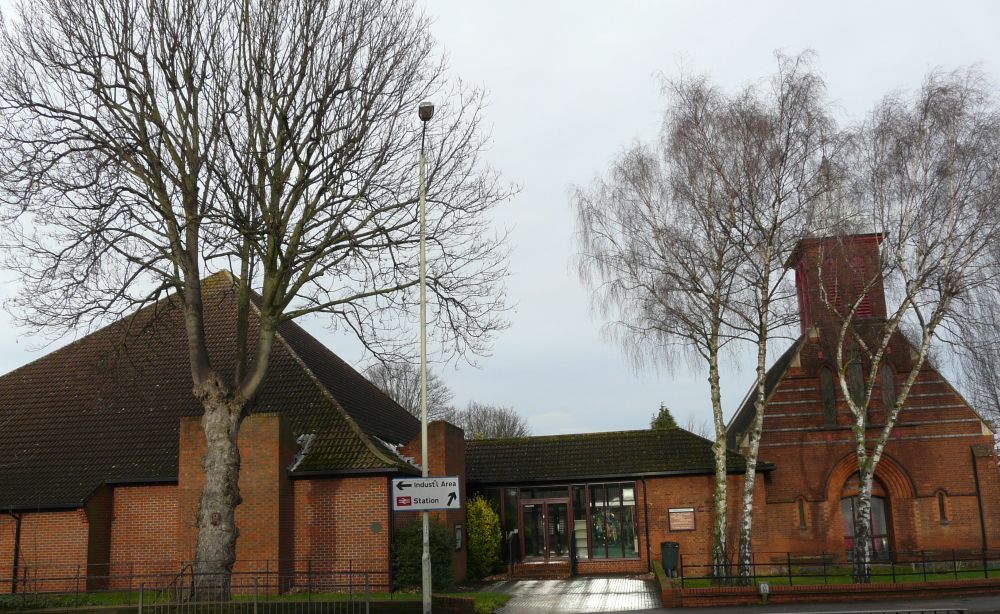 North east of the town centre stands the original church of 1901, now in use as a hall having been superseded by a building of 1977. The original church is by A.E. Purdie, the replacement by Derek Goss of Hamilton Associates.