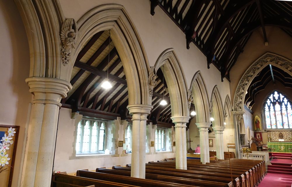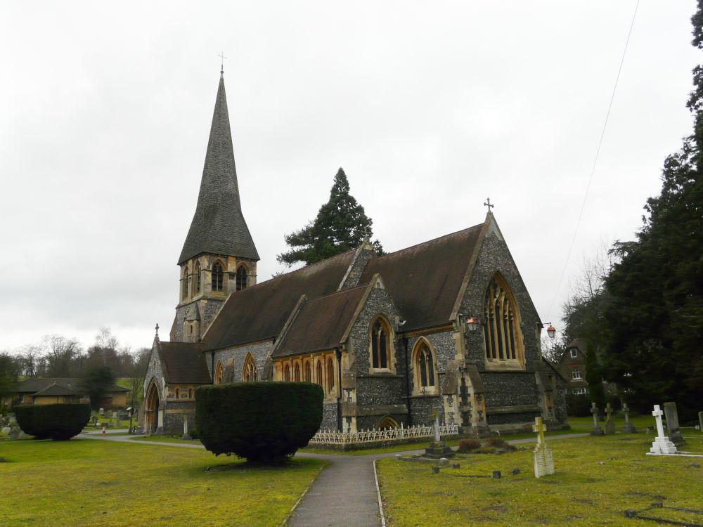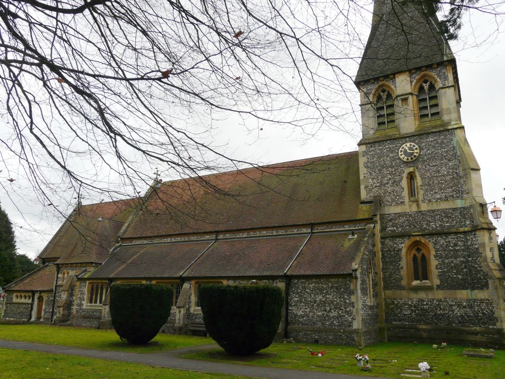 By the main road between Watford and Kings Langley in a village known as both Langleybury and Hunton Bridge. It is a church by Henry Woodyer dating from 1863-64, the main furnishings were also designed by Woodyer, including the marble font with its architectural cover and the carved chancel arch.