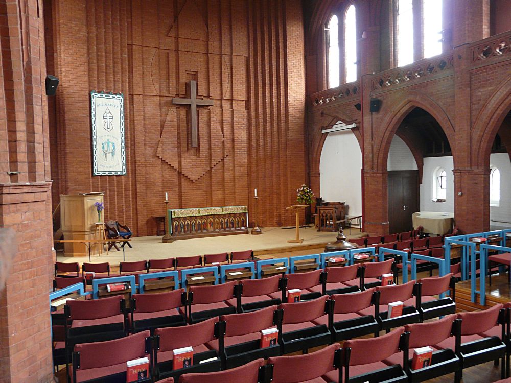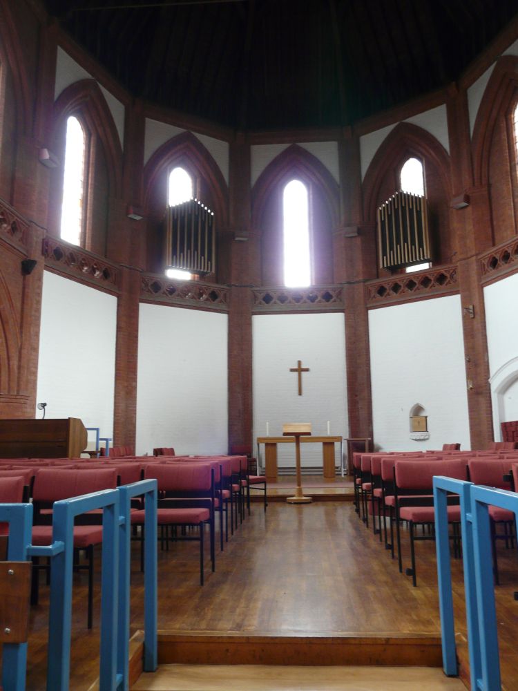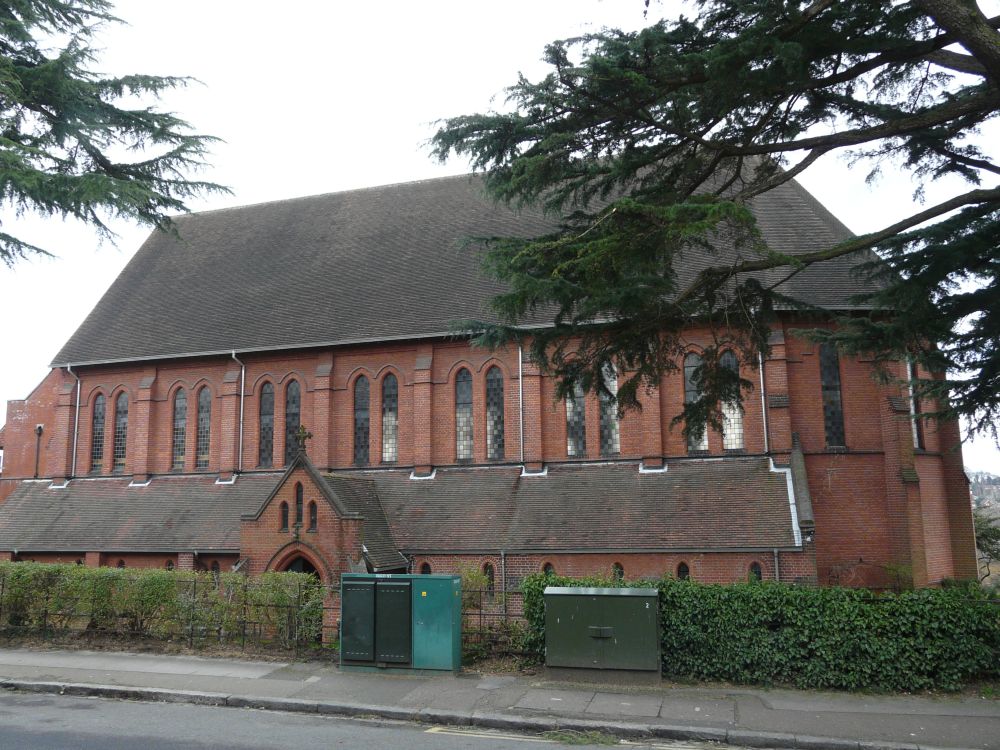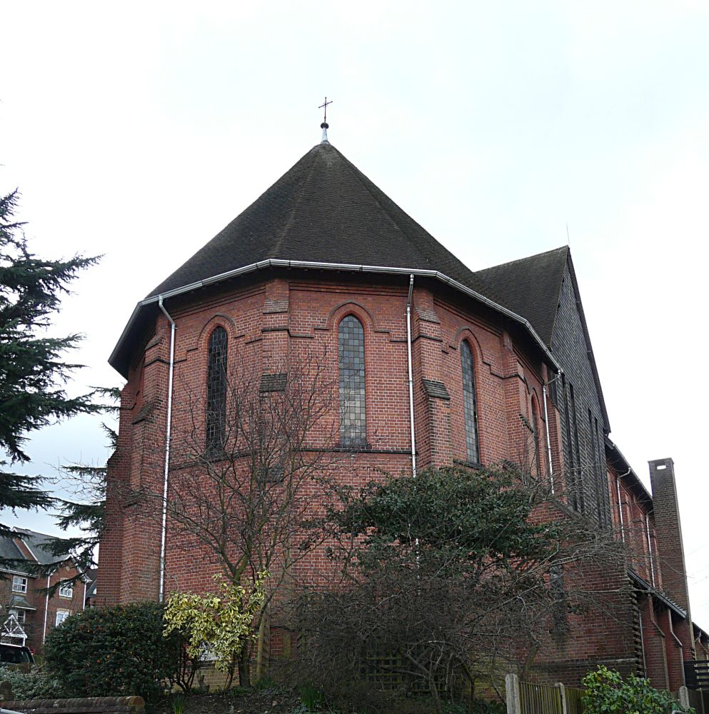 In the east of the town, stands this large red brick church of 1905 designed by C.H. and N.A. Rew. A picture in the church shows the ambitious plans for twin west towers that was never executed. In 1975-80 the church became shared with the Methodists, a formal Anglican/Methodist partnership being established in 1993 . In 1975 its orientation was reversed when the two western bays were converted to a hall and a new western wall built to designs by Percy Mark. The old chancel in the apse became a lady chapel in 2005. The font comes from St Peter’s and dates from 1662.