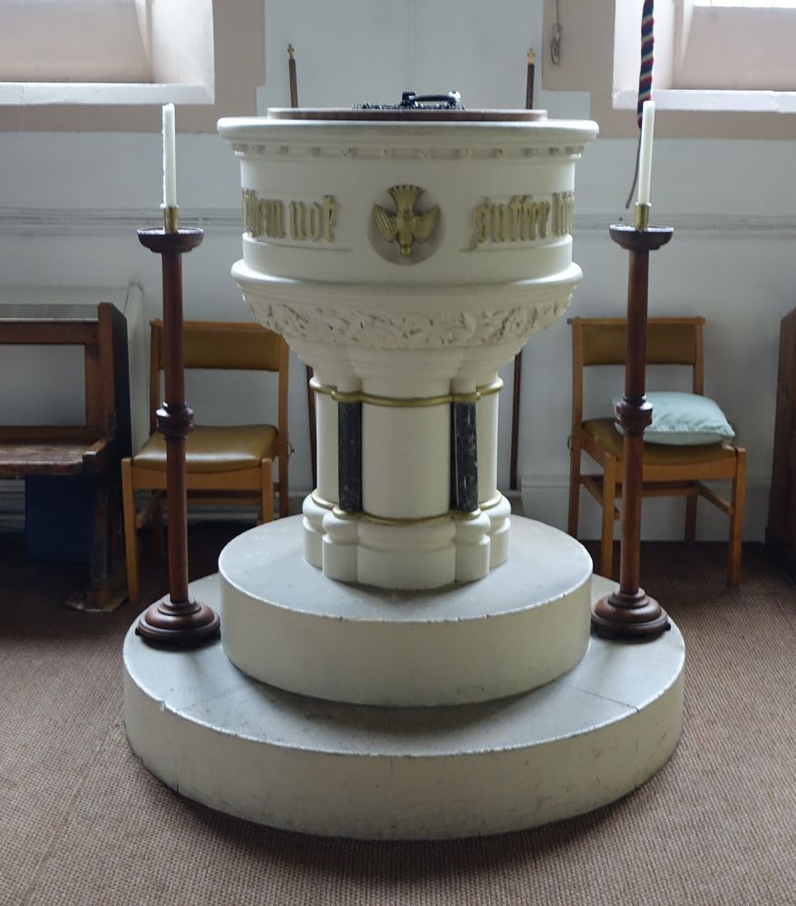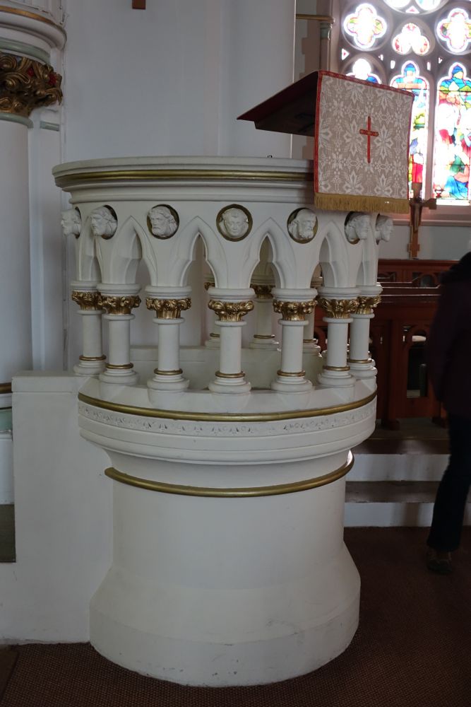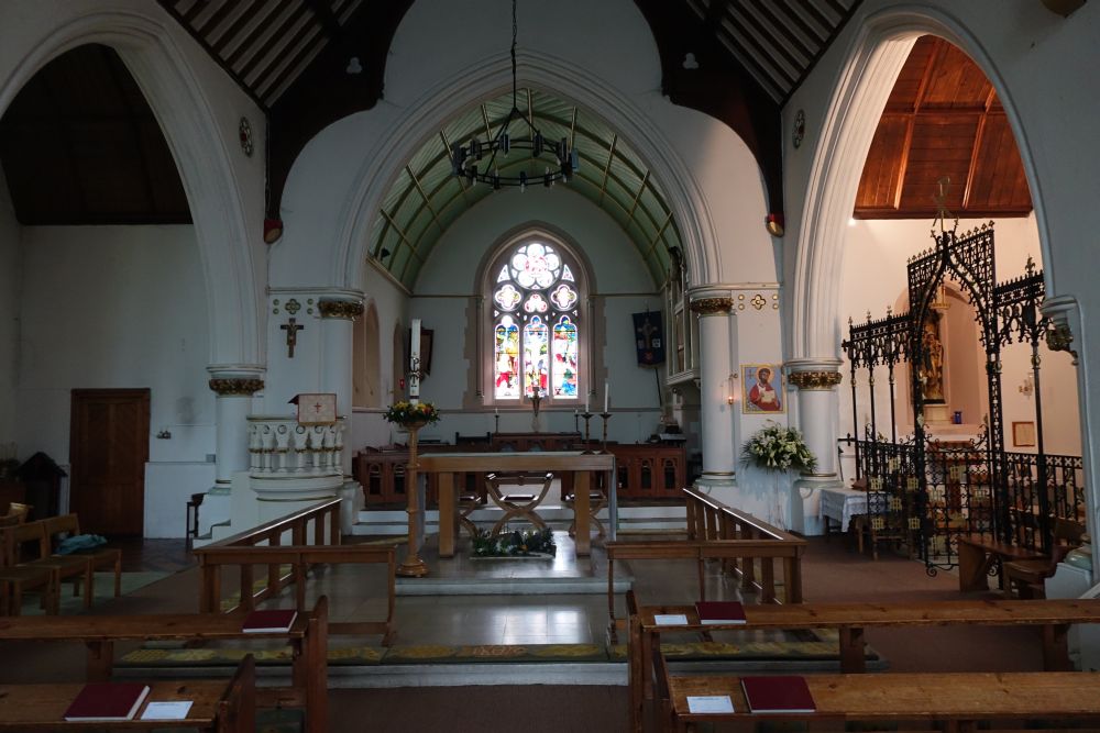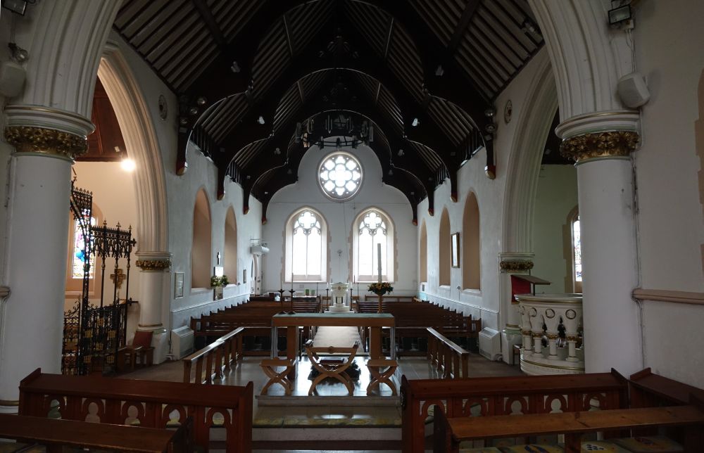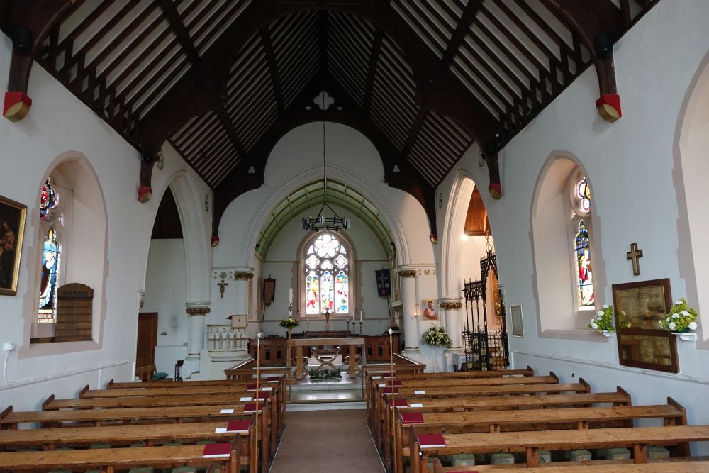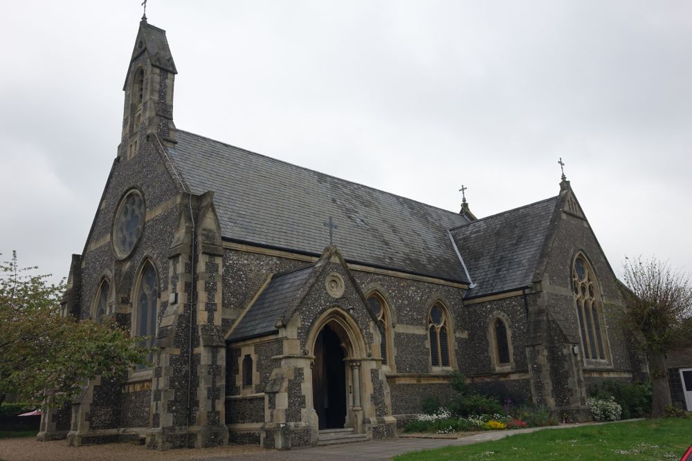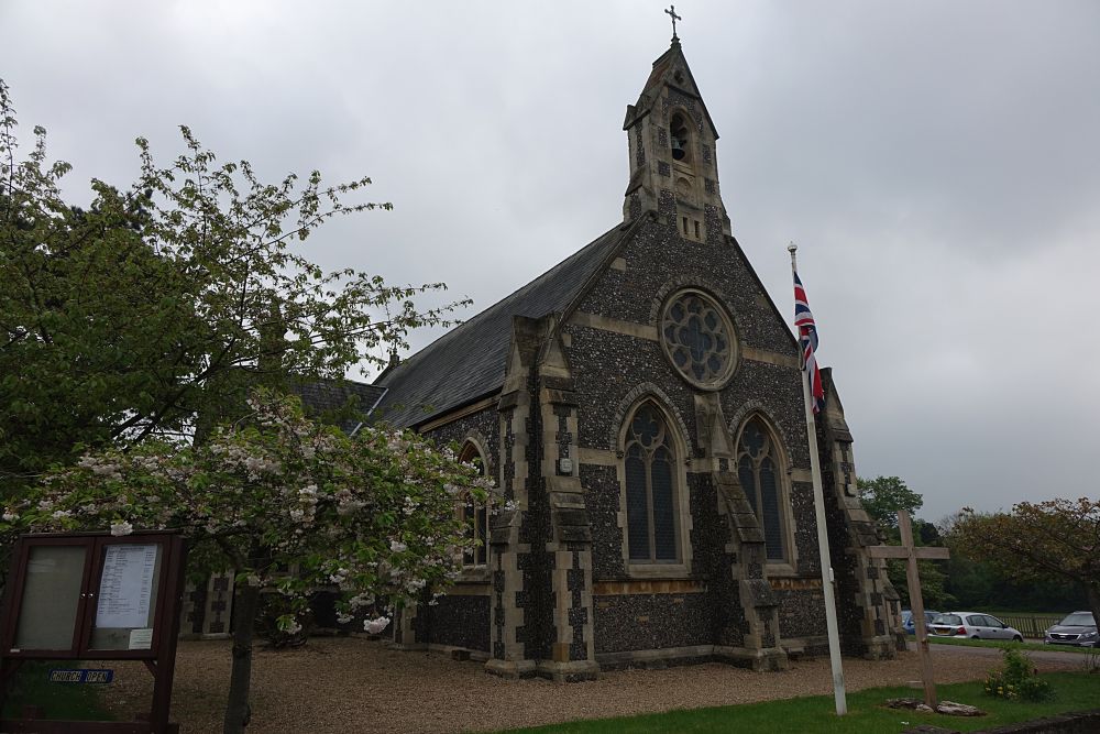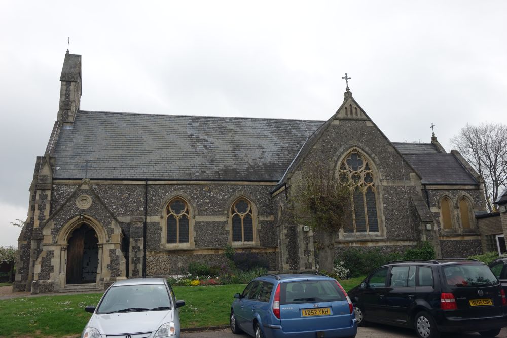Mill End is effectively western Rickmansworth. This church was designed by Richard Charles Sutton and built in 1874-75 an. The interior has been reordered with a central altar, there is much glass either by or attributed to Heaton, Butler and Bayne.