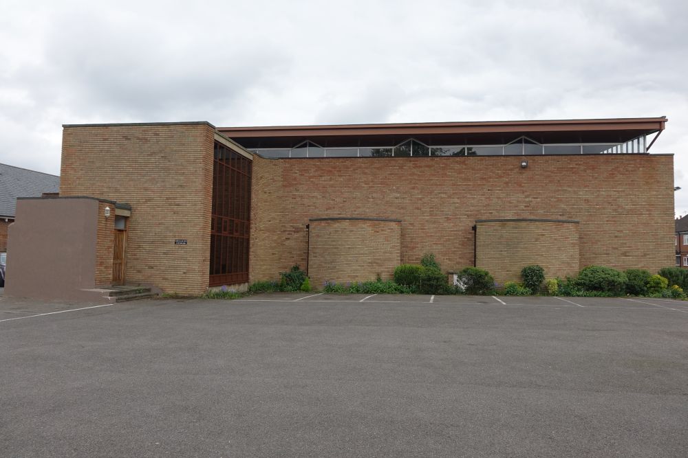 Just off the village street and very close to the Anglican church. Designed by John Rochford and dating from 1962-63. The large sculpture is by David John.