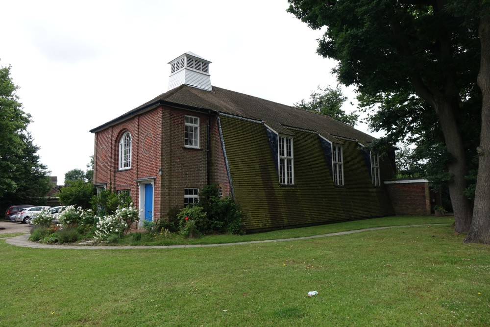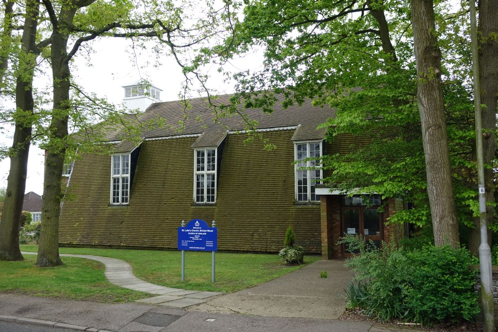 In the suburbia between St Albans and Watford that is Bricket Wood. The church dates from 1936 and was imported in kit form from Canada. It has since been re-aligned with the sanctuary at the old entrance end.