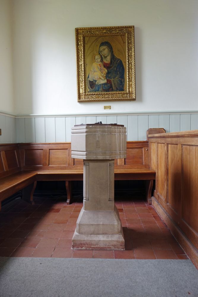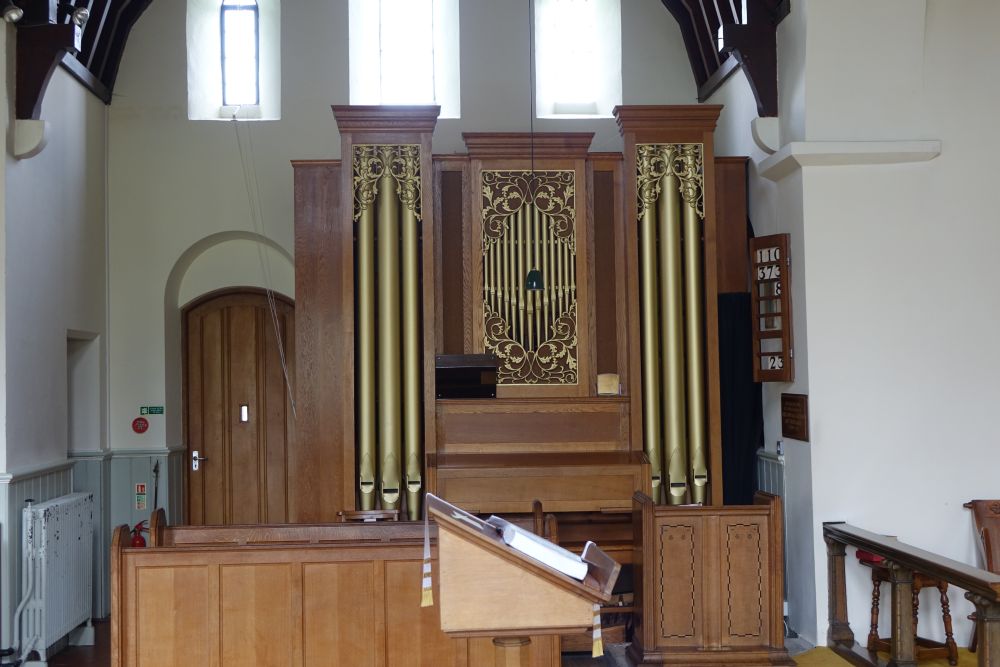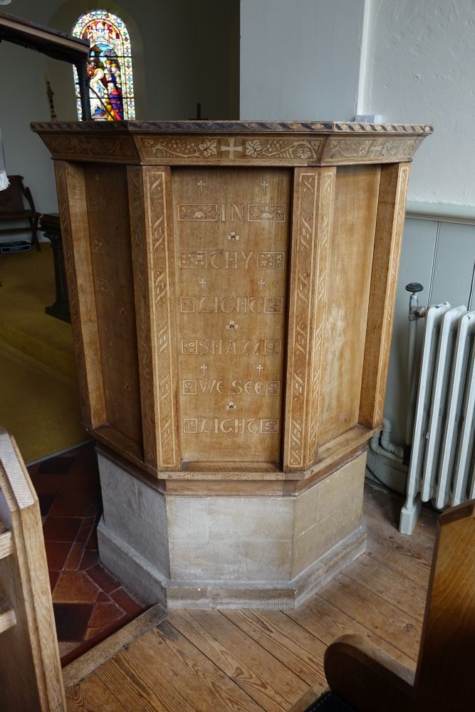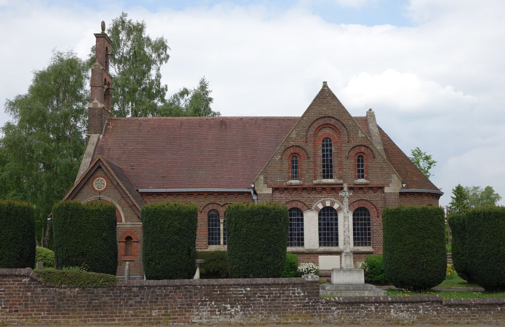 A large but attractive village between Hemel Hempstead and Berkhamsted, with the church facing onto the large green. It dates from 1865 and was designed by F.C. Penrose. The porch was added in 1908. The glass is by Ward and Hughes.