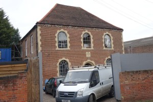 Built in 1778, with a rebuilding in the mid 19th century. It closed in 1918 and has had a variety of uses as a hall, auction rooms, club, printing works but was empty when photographed in Oct 2014. In March 2017 it was undergoing refurbishment (bottom right) and conversion into five two bedroom flats.