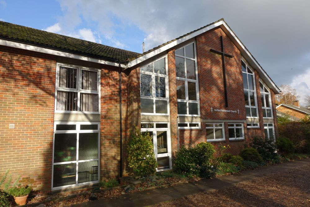 In the eastern suburbs of the town towards Marshallswick. The original building on the site is now the hall and dates from 1949-50, with the current church at right angles being built in 1964 and extended in 1990.