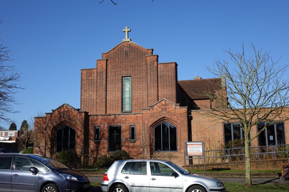 A short way south of the town centre a large hall and church complex. The church dates from 1940 with additions of 2005. The chancel stained glass by Goddard & Gibbs was installed in 1972.
