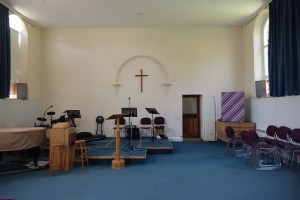 Near the centre of the village. The congregation dates from 1836 but the chapel is a little later. Originally an Independent then a Congregational Church, it is now an independent congregational chapel. The burial ground is on the other side of the road and behind the village primary school. The balcony was converted into a rather individual coffee bar some time ago.