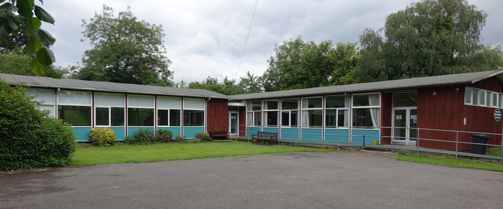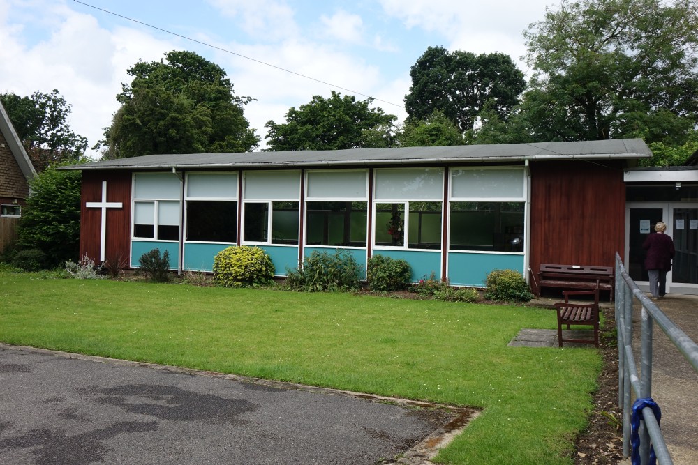 Two 1960s buildings at right angles to each other, the current hall was the church and the current church was added as a hall. It replaced the old Congregational Church which is now a lawn mower shop.