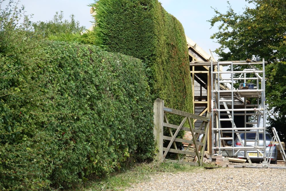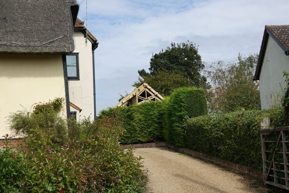 Sitting on the boundary between two houses in Cheapside, a short way from its replacement the Union Chapel built in 1902. This small wooden chapel was built in the late 19th century and after replacement was used as a meeting room and hall, known locally as The Cabin. In 1988 it was sold to the two adjoining properties called Little Thatch and Oakwood. At the time of my visit in early September 2018 it was undergoing reconstruction. It is difficult to determine how much of the original building remains. The bottom right image shows the reconstructed building in January 2019.