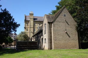 The Bishop’s College site has had three distinct uses. From 1792 until 1905 it was a college for training ministers, principally those of the Countess of Huntingdon’s Connexion. It then became Bishops’ College, a training college for the Church of England from 1909 until 1968. Following that it became the council offices for Broxbourne Council and to which they have added a large post modern range to the south. The older buildings are at the north end of the site with a large eastern extension of 1870. Despite its ecclesiastical appearance, particularly the apsidal library, it did not contain a chapel (bottom right picture). The chapel of the orignal college are the buildings on the road front dating from 1806 and altered in the later 19th century, now called the Beaufort Suite, having been the council chamber prior to the modern buildings being finished. At the eastern end of the 1870s building there is a 1936 extension, designed by “Mobely” according to the Broxbourne Council leaflet referenced below, which was used as the chapel in later Anglican days (bottom left picture).