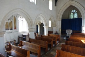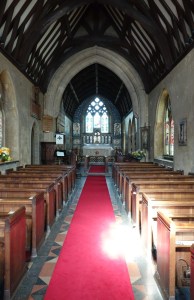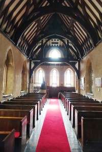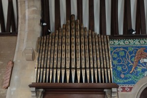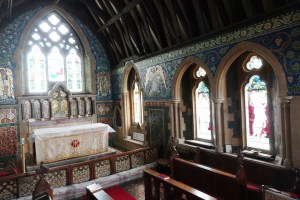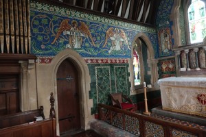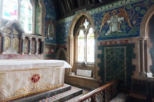 On the edge of the Goldings estate just north of Hertford. It was designed by Henry Woodyer and built 1871-72. The interior is a treasure house of Morris glass designed by a variety of Pre-Raphaelite artists, Powell mosaics and some fine 20th century glass by Christopher Whall, Karl Parsons and Douglas Strachan.