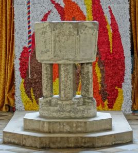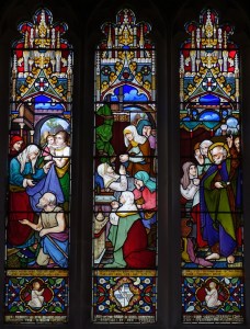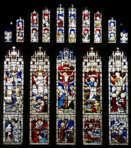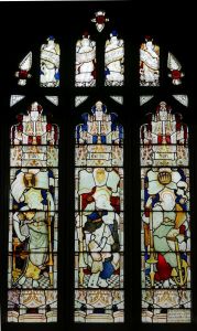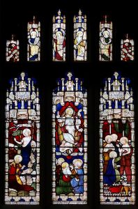 The original Knebworth parish church which stands in the grounds of, and not far from, Knebworth House just outside Stevenage. The tower is 15th century and there is Norman work in the Chancel, with the Lytton chapel rebuilt around 1705 and full of vast monuments to the family. The window below is likely to be by Christopher Whall.