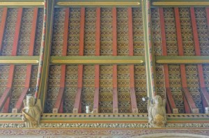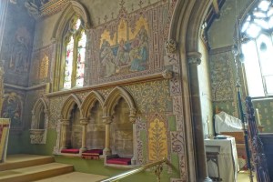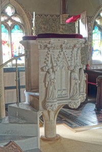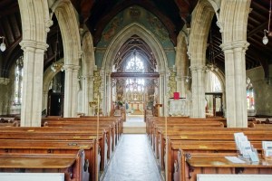 An unusual solid stone screen containing a Norman chancel arch of roman brick is the principal feature of the church in this village just north of St Albans. Much of the west end was rebuilt in 1886-1997 by William White.