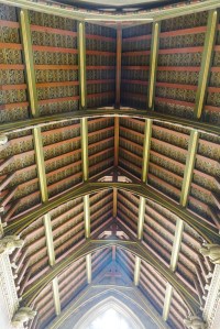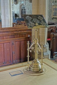 A large town church in the middle of a park. The nave is the adapted remains of a Priory. There is original 13th-century work but much that is 16th or 17th century. The chancel and tower are 19th century. The post WW2 window is by Hugh Easton. The alabaster knight is of around 1415.