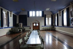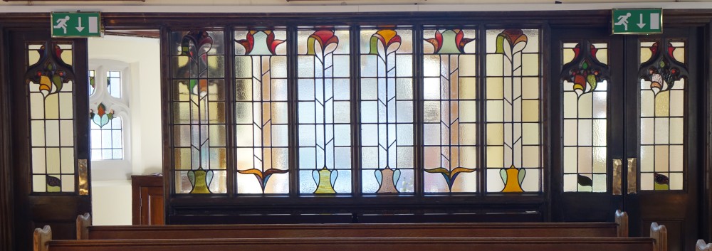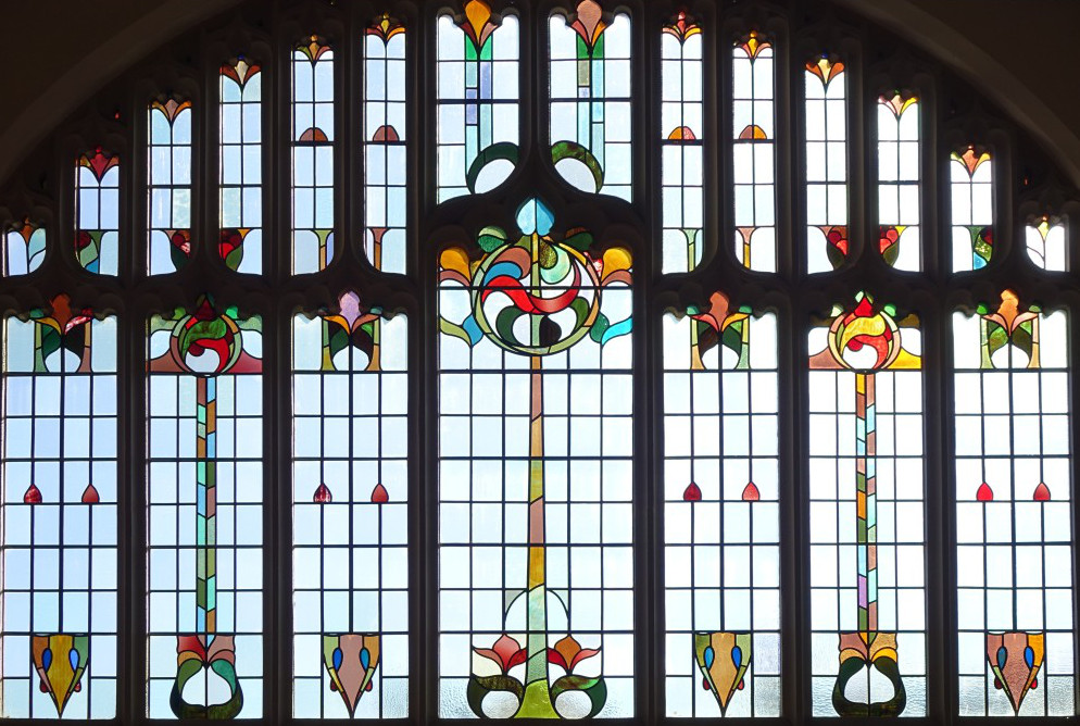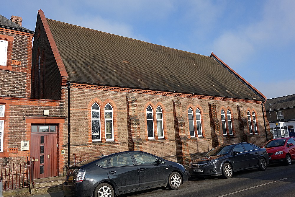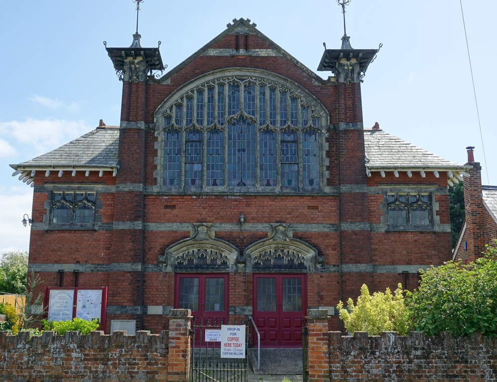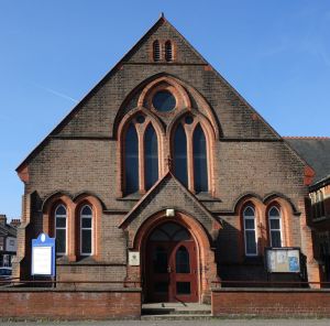 North of the town centre. It was built in 1910-14 to designs by George Baines, A new entrance area linking to the halls was added in 1982. The interior has lost most of its original furnishings and has been turned through 90 degrees so that the dias is against a long wall.