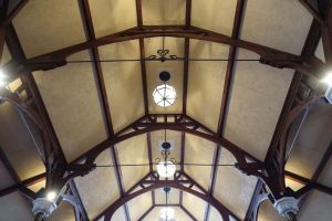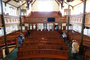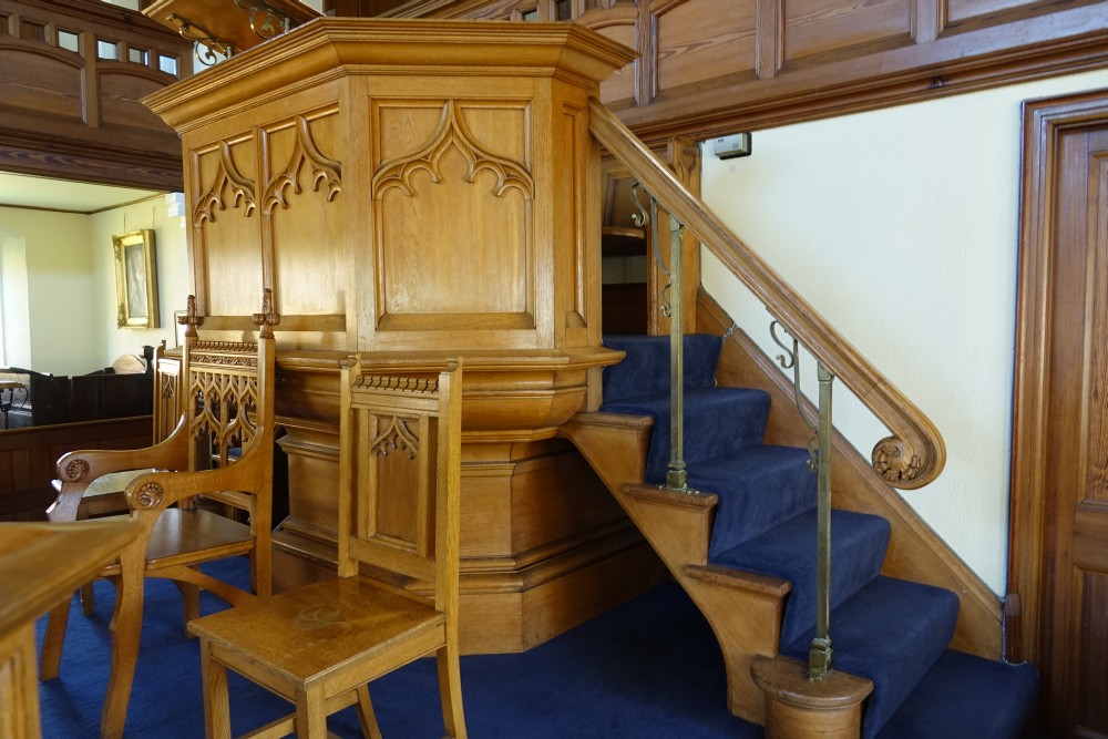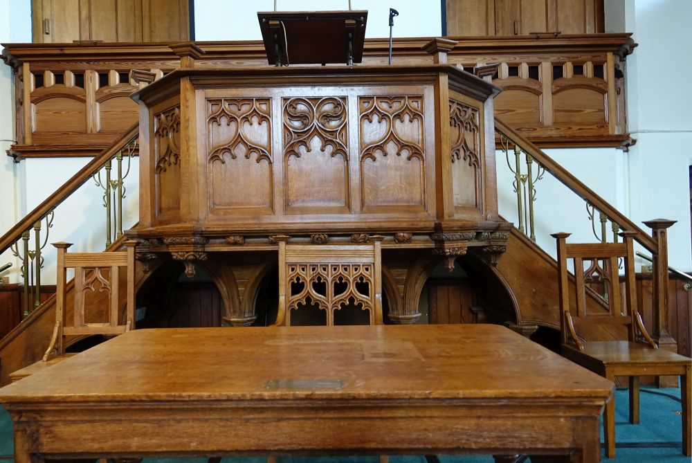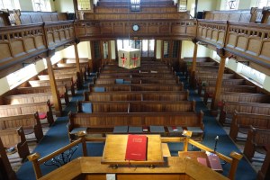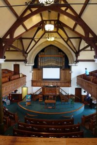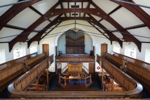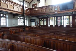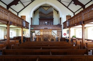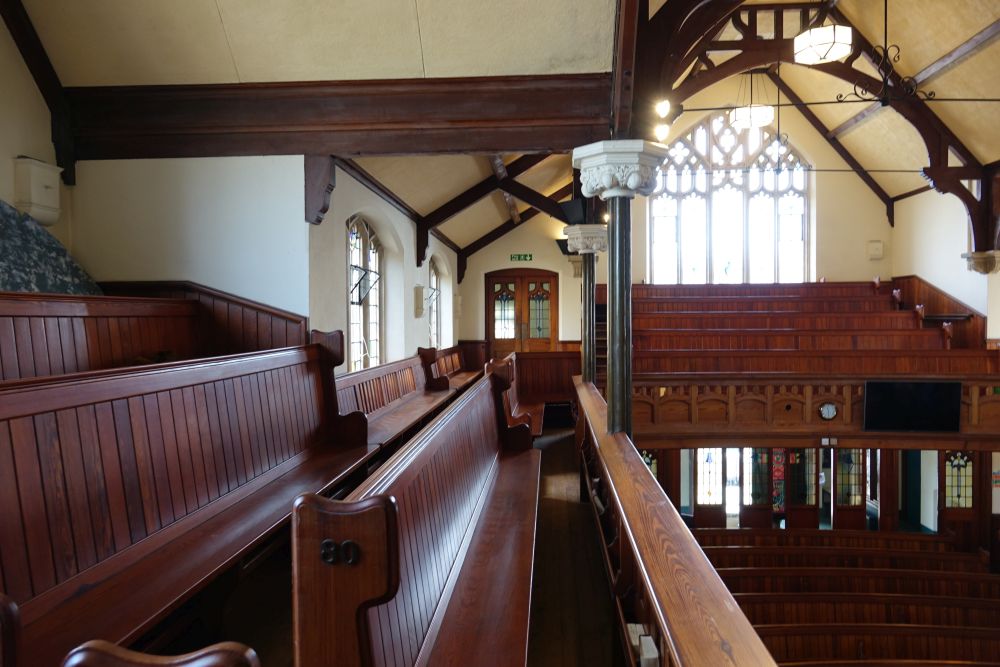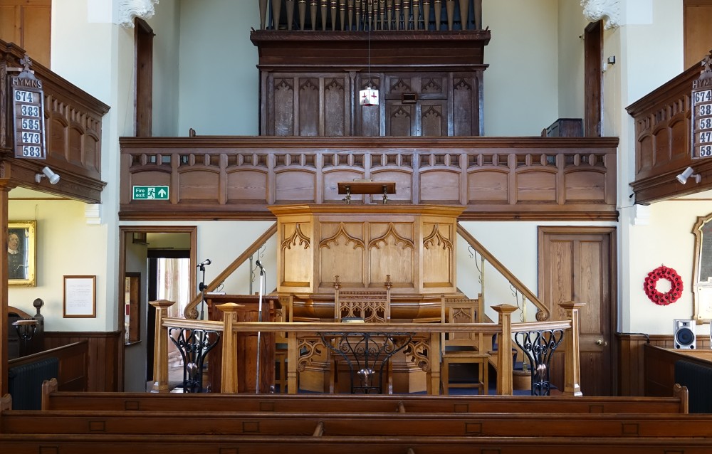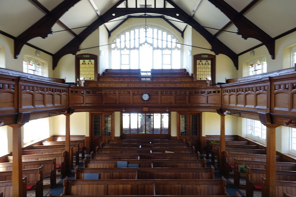Built in 1852 as the Congregational Church, replacing an earlier building destroyed by fire in 1850. There was an interior refurbishment in 1906 by George Baines.
