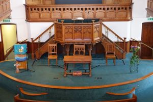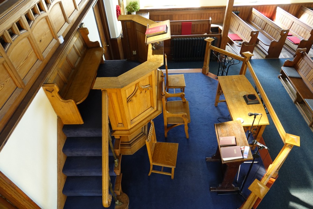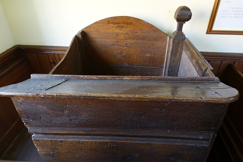 A large hamlet just beyond Luton Airport’s runway. This rather urban chapel by George Baines and Sons dating from 1904 is the only place of worship here as the parish church is some way away at Kings Walden. It replaced an older 1870s building, whose schoolrooms remain at the rear. It also contains a much older pulpit reputed to be that used by John Bunyan in the late 17th century.
