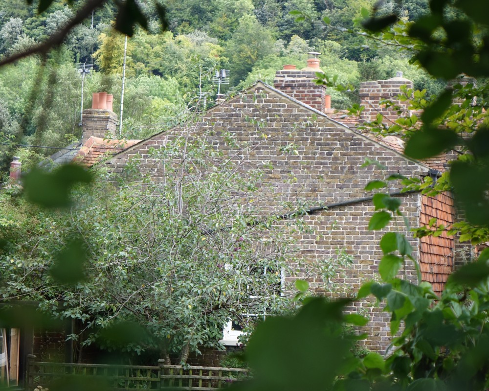 Hidden from the road behind Lace Cottage in Stocks Road, Aldbury. From the road only part of a tile hung wall can be seen, a public footpath at the rear of Stocks Road enables a view of an end wall only. It was built around 1827 or 1836 depending on the source used.