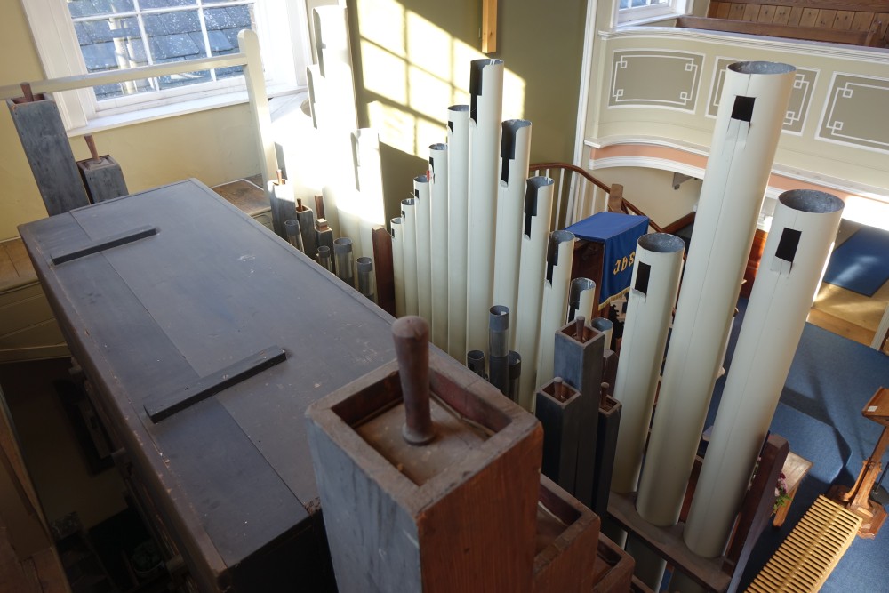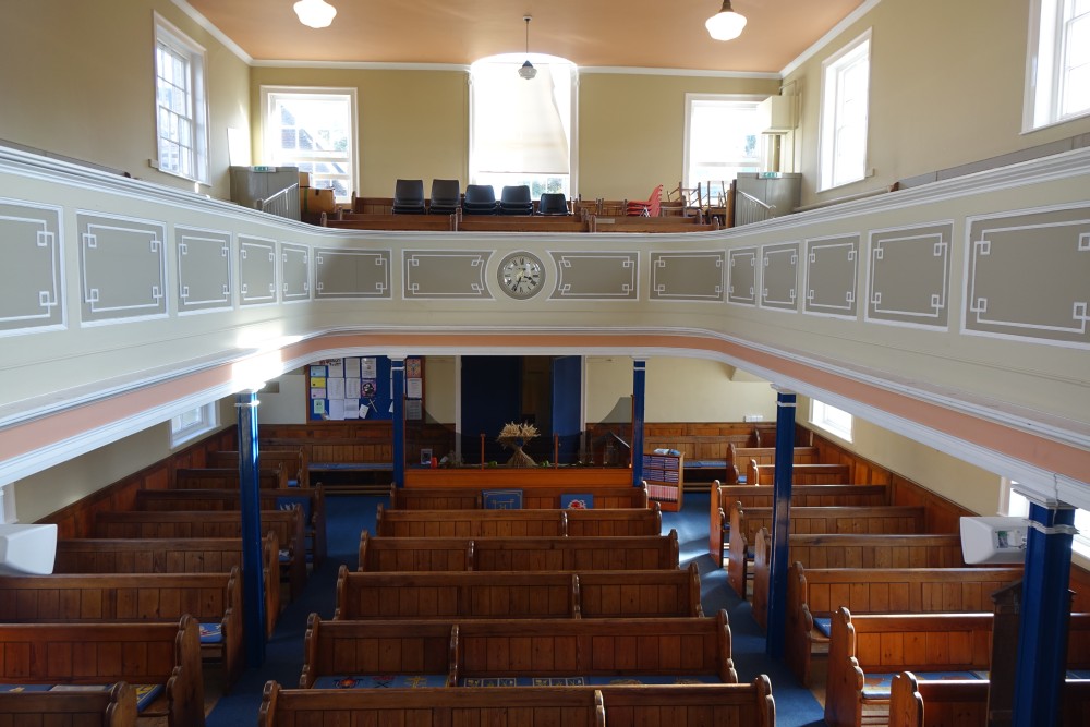 Just off the High Street, a church of 1819 built for Congregationalists, replacing an earlier church destroyed by fire.