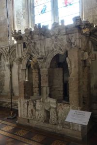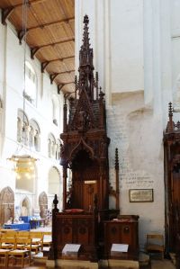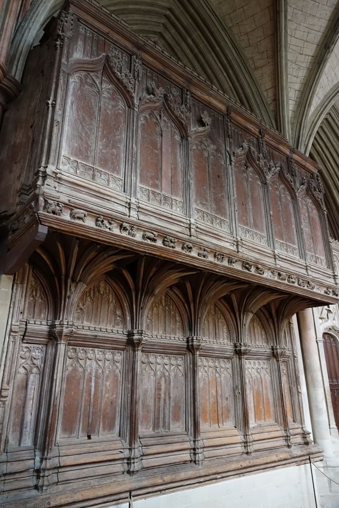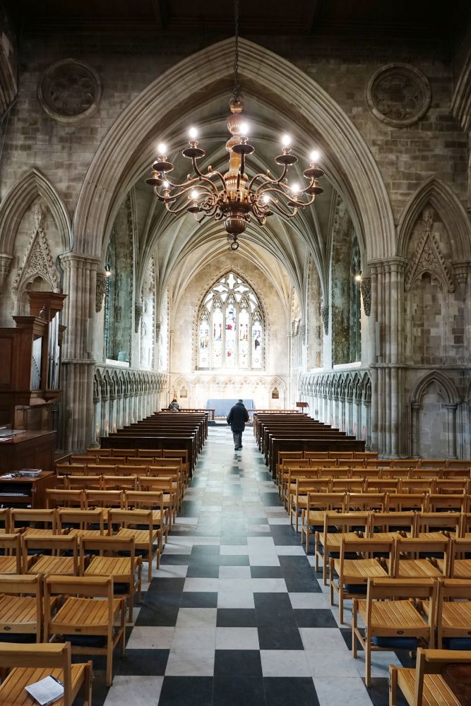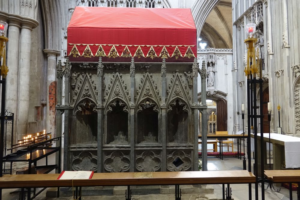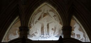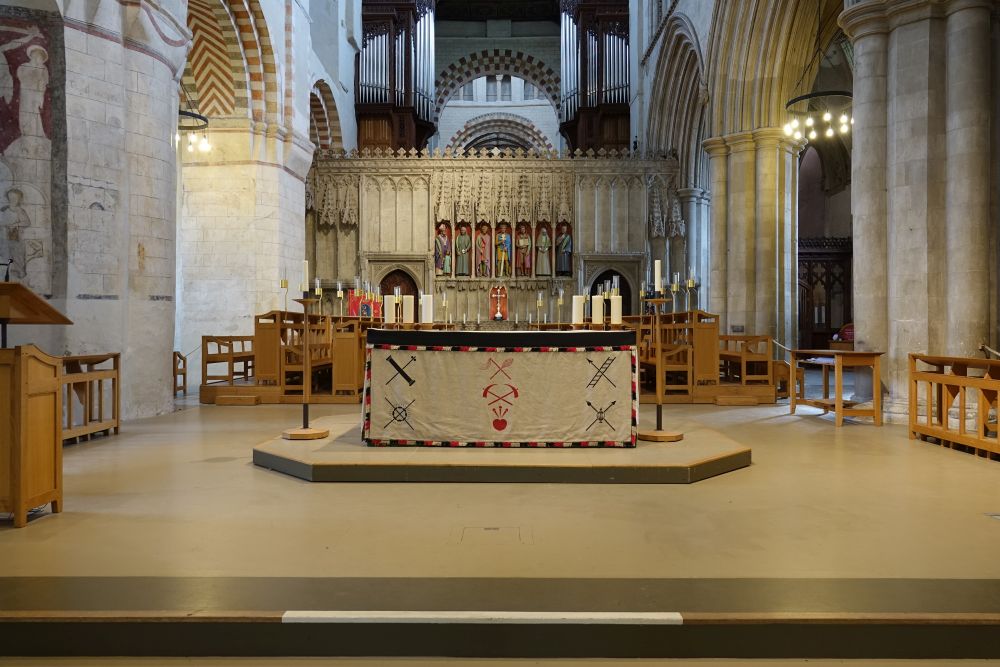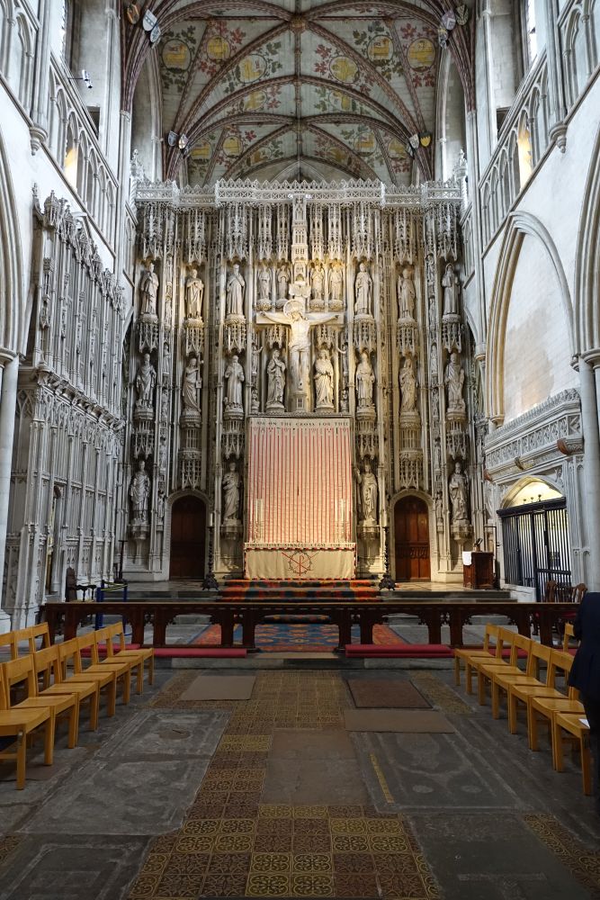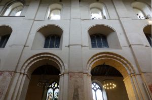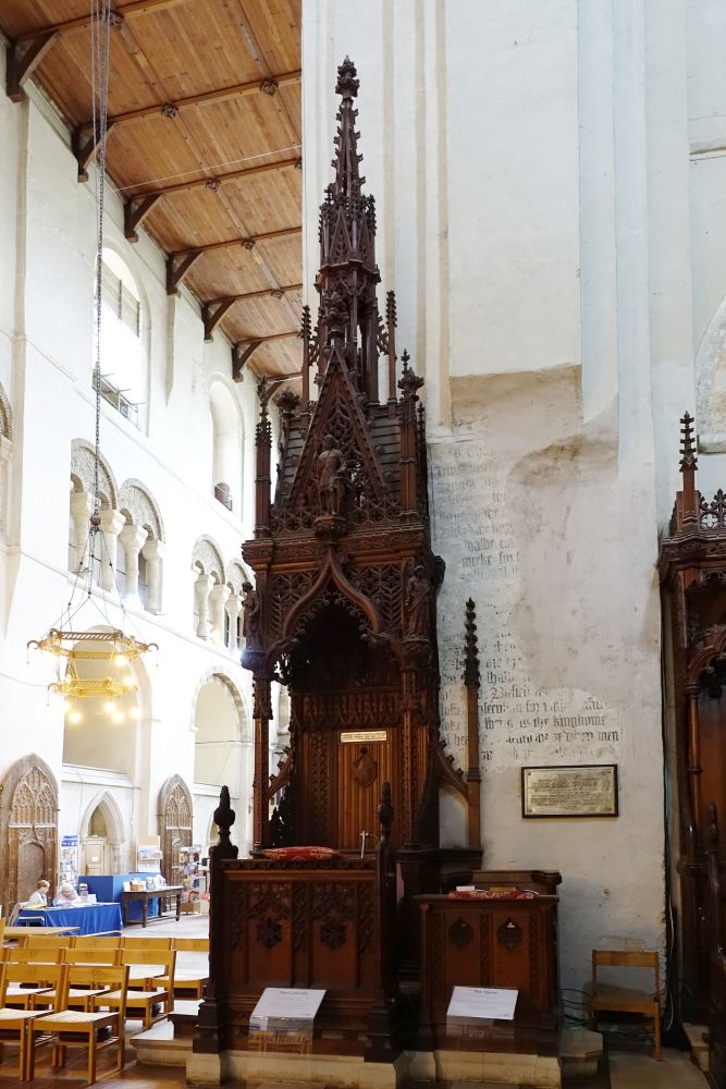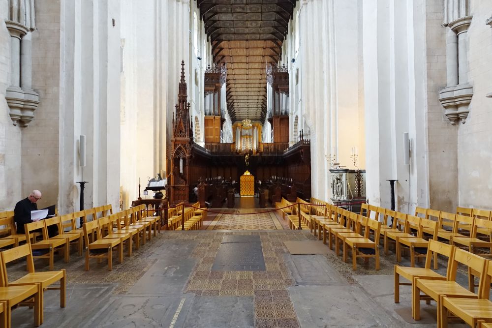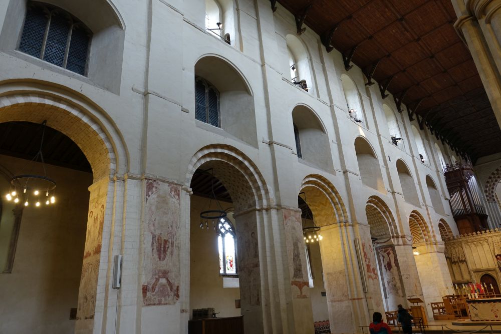 Hertfordshire’s only cathedral was raised to this status in 1877. St Albans’ Abbey was dissolved in the reformation but the great church had remained as a parish church. The longest nave in England. The building was “restored” by Lord Grimthorpe from 1879 in an idiosyncratic style but much Norman and medieval work remains. There are many medieval wall paintings in the nave. The Shrine of St Alban between the choir and Lady Chapel has been restored.