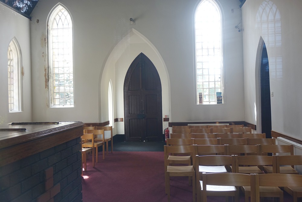 Two chapels one for Anglicans and one for Dissenters at right angles to each other. The cemetery and presumably the chapels date from 1857.
