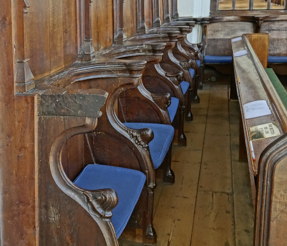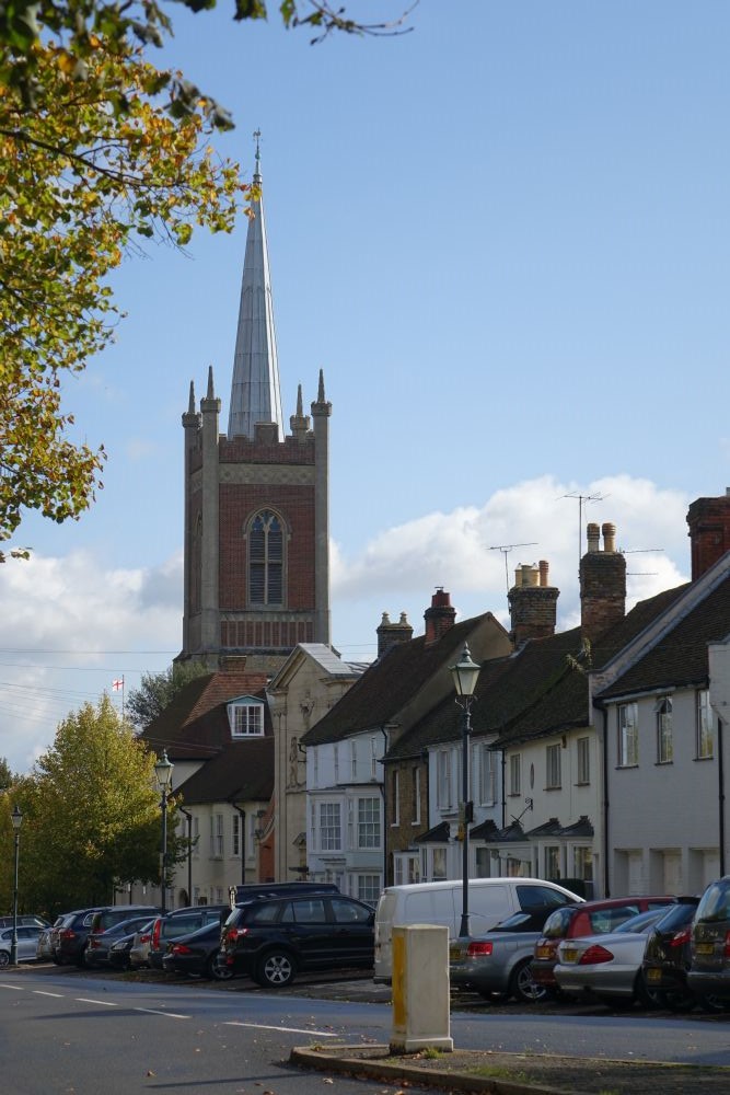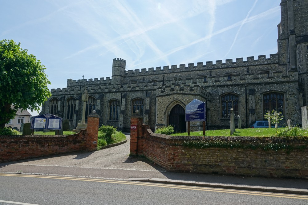 Sitting raised above the town centre. A large medieval church with a brick tower top and unusually a spire, both of which were added in 1812. Joseph Clarke restored the church in 1867-68 and there was a more recent restorations by Stephen Dykes-Bower in 1960s and 70s. The chancel misericords are reputed to be from the old St Paul’s Cathedral. There is a huge collection of carved corbels and headstops around the church.
