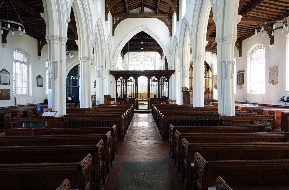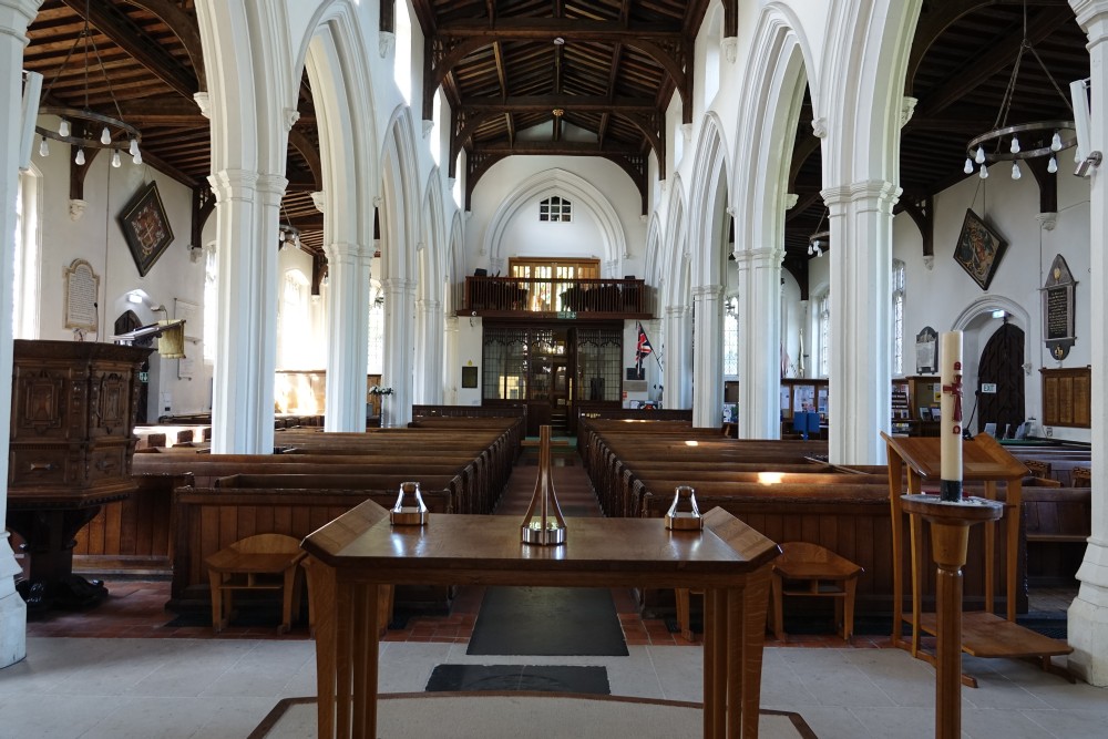 A classical nave from 1732, Victorian chancel 1864-5 by Joseph Clarke and an 1888 tower by Arthur Blomfield.