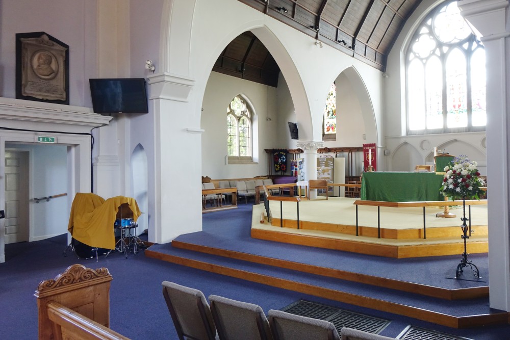 Designed by Joseph Clarke and built in 1859. The east and west ends were extended by Arthur Blomfield in the late 19th century. The interior was re-ordered in the early 21st century when the nave flooring and lower walls were badly affected by damp.